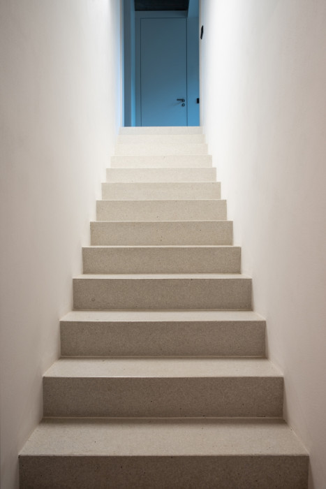 Ve druhém nadzemním podlaží je umístěna ložnice s navazující koupelnou, která je od ložnice oddělena skleněnou stěnou. Na galerii nad obývacím pokojem je umístěna pracovna. Z galerie lze pak dál pokračovat do podkroví. Podkroví slouží většinou jako tělocvična nebo herna pro děti. Tato nejvyšší úroveň domu je prosvětlená posuvným oknem 2x2 metru. Protože je i tato část otevřená do hlavního obytného prostoru galerií, prosvětluje okno většinu obytného prostoru.