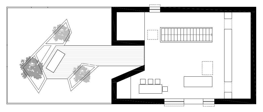 Budova interaguje s okolní krajinou. Původní stará kamenná stěna se stala součástí návrhu, tmavě hnědé dřevěné latě a světlé obložení v interiéru ilustrují rivalitu mezi vnitřním a vnějším prostředím.