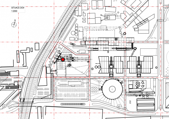 Stavba se nachází v zastavěné části průmyslového areálu tzv. Dolní oblasti Vítkovic v prostorách Národní kulturní památky industriálního dědictví – Vysoké pece č. 1. Pro stavební činnost v Dolní oblasti Vítkovic byla zkonstruována zastavovací čtvercová modulová síť o rozměrech stran 125 / 125 m.