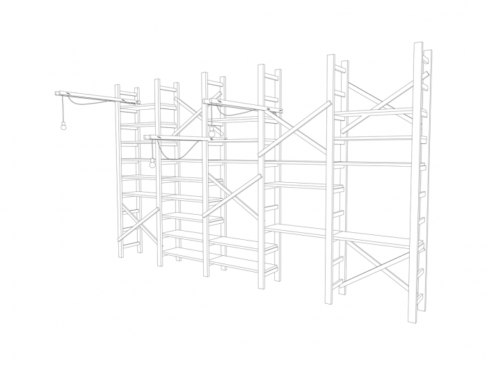 Mjölk architekti, Bookstore Artmap, knihovna 02, axonometrie – foto