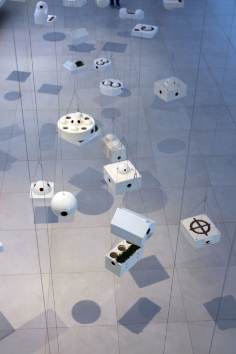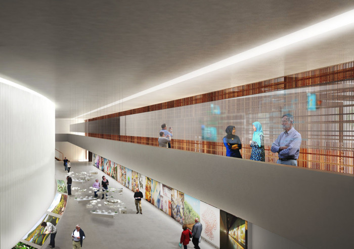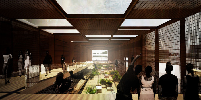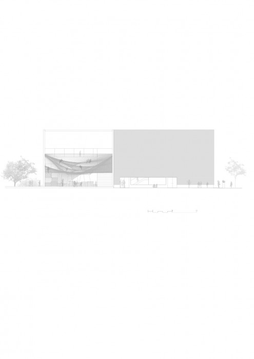 Síť vychází od základů konstrukce a sahá přes dvě podlaží v jediném hravém gestu, a dokáže spojit dohromady několik symbolů, jako je například setkávání lidí a nezávislost ekosystémů.