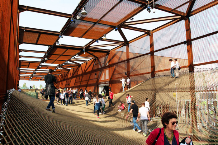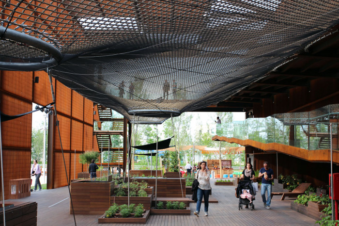 A všude je zde kladen důraz na udržitelný rozvoj, od konstrukčního systému vytvořeného z prefabrikovaných modulů, přes zařízení pro opakované využívání vody, až po využívání certifikovaných a recyklovatelných materiálů. A zásadní součástí zážitku, který si z návštěvy pavilonu odnesete, je skutečnost, že racionálnost této efemérní architektury předvádí, že je možné vytvořit smysl a obsah jen z mála a bez negativního dopadu na okolí.