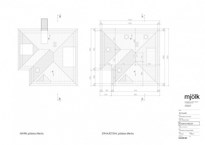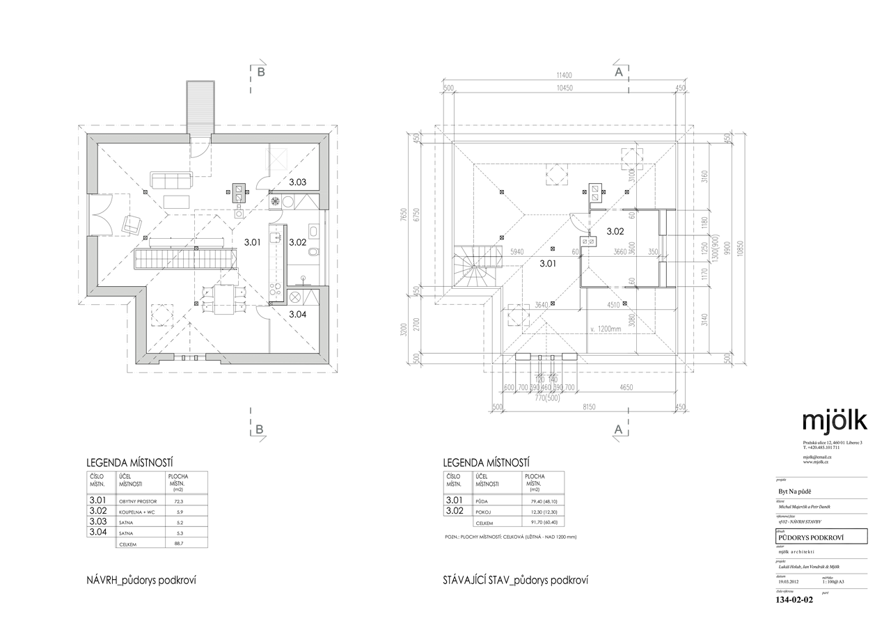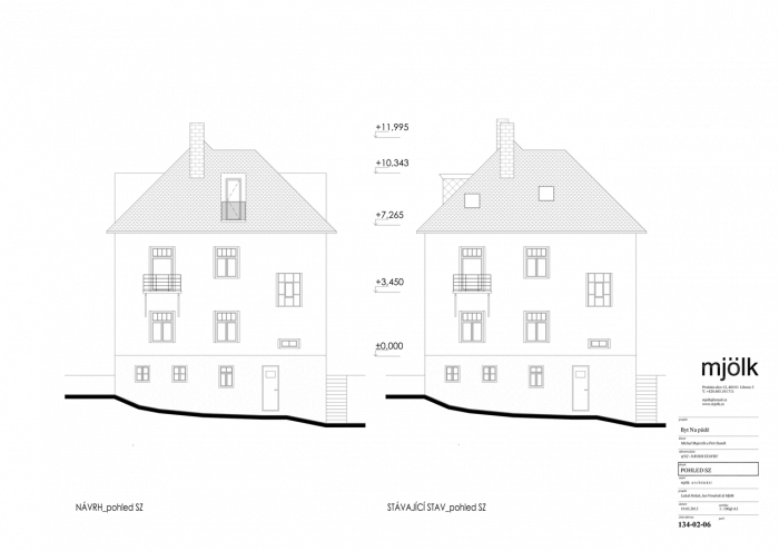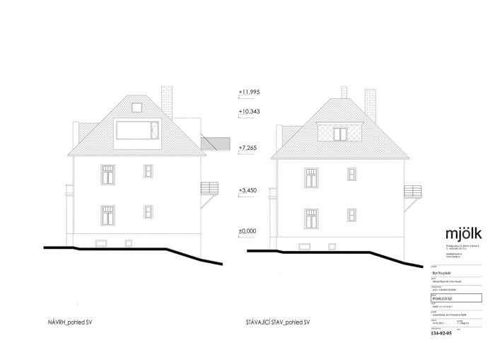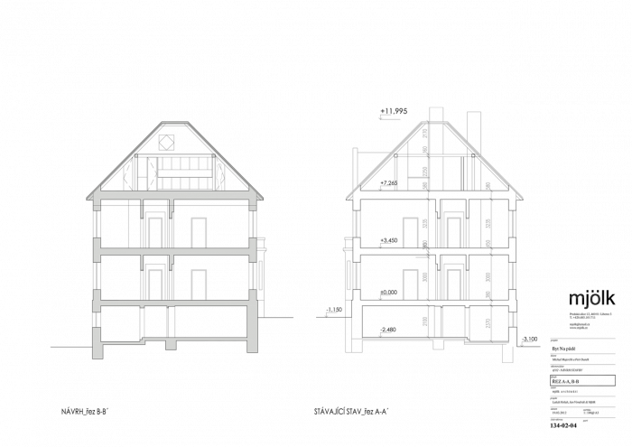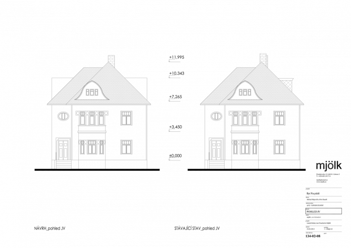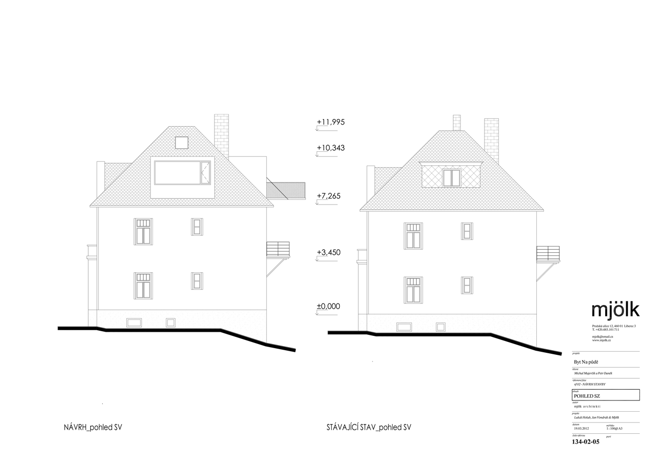 Zadáním byla rekonstrukce fasády a vestavba půdního bytu do stávajících půdních prostor. V průběhu navrhování jsme se nakonec s klienty rozhodli propojit půdní prostory s dolním bytem tak, aby nabízel dostatečně velkorysé prostory pro život i případné rodinné návštěvy.
