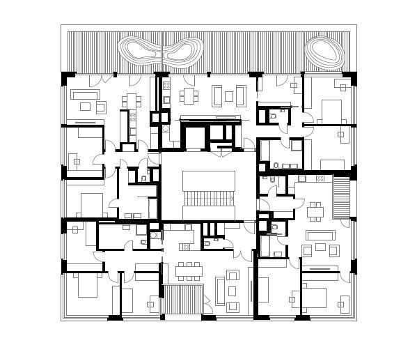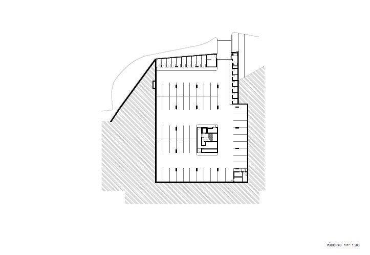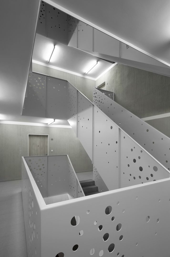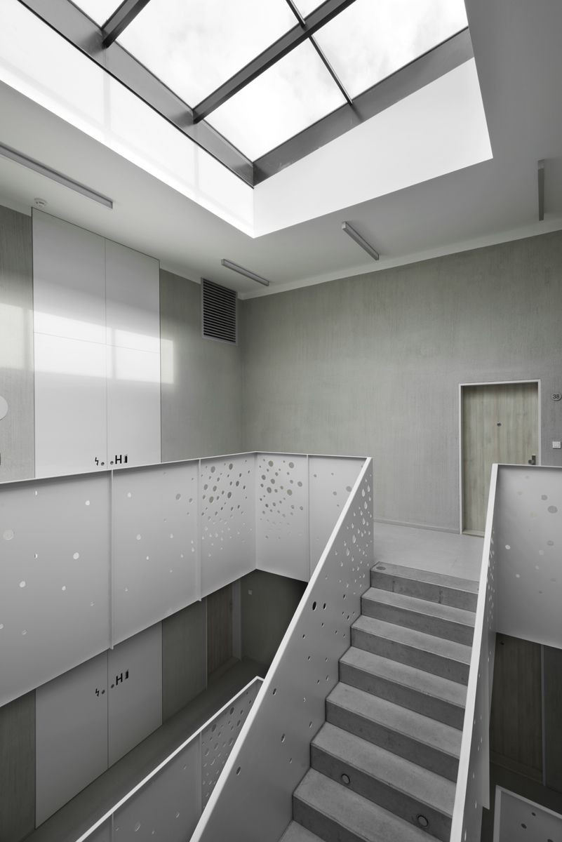 V domě je navrženo celkem 39 bytů velikostí 1-5+kk, v suterénním parkingu je 50 stání.