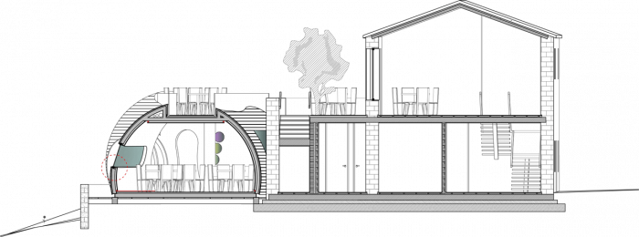 Stavba je výsledkem transformace, jejímž cílem byla regenerace a rozšíření malého stávajícího objektu, jenž byl léta neudržovaný a chvílemi i opuštěný. Došlo k obnovení stěn, zárubní a střechy, přičemž byly zachovány základní rysy původní konstrukce. Znovu byly navrženy interiéry a přizpůsobeny své nové náplni, jíž je restaurace. Současně bylo třeba pamatovat i na současnou legislativu.