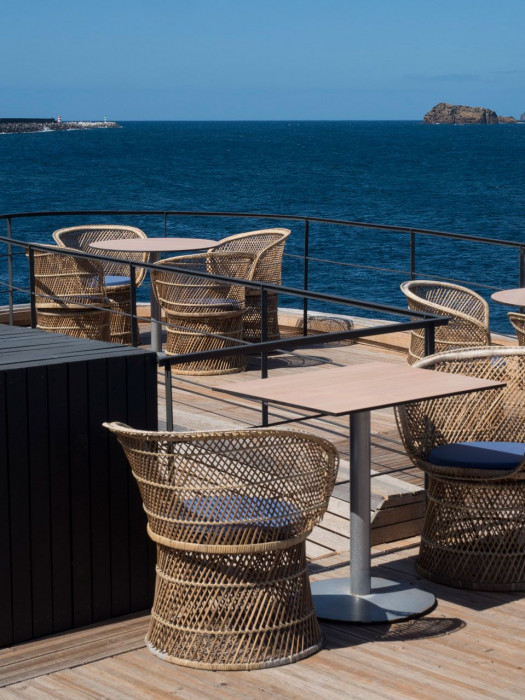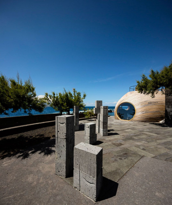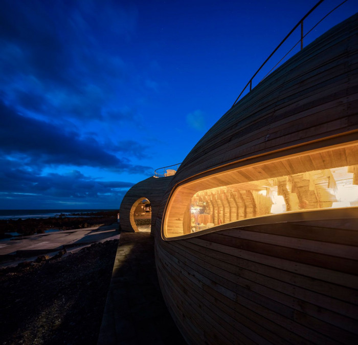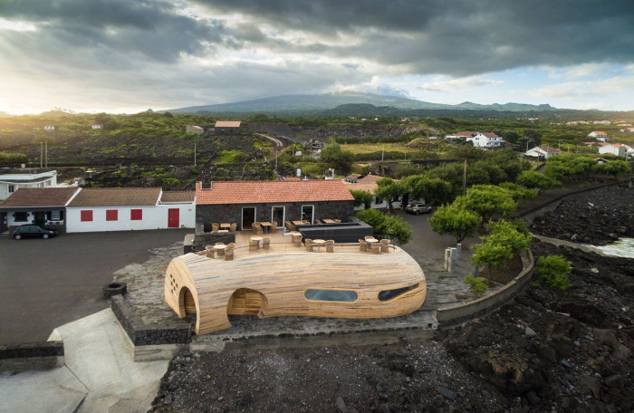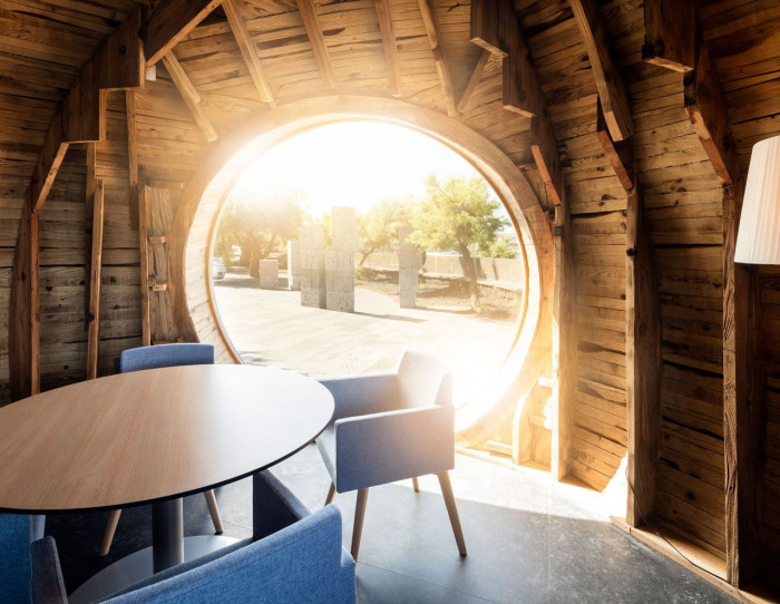 Nově pojatý prostor je jakousi současnou moderní kreací, která mluví docela jiným jazykem. Jedná se o organickou, dynamickou konstrukci, která ostře kontrastuje s klasickým pravoúhlým jazykem stavby, ke které je nová část přisazena. Design nové části je definovaný vysokou plastičností, a to jak formou, tak použitými materiály, a je viditelně inspirovaný přírodním prostředním, které stavbu obklopuje. Některé charakteristické prvky okolní krajiny se přímo objevují v architektonickém pojetí budovy. Vidíme zde obrys ostrova, skaliska, velryby a soudky s vínem. Nová stavba působí jako mohutná plastika, vytesaná na míru pro tuto lokalitu.