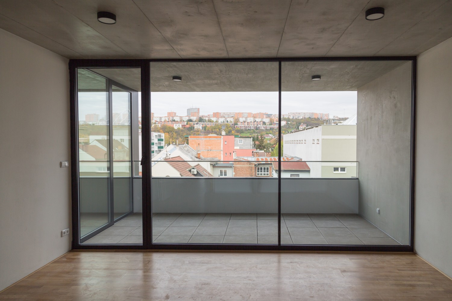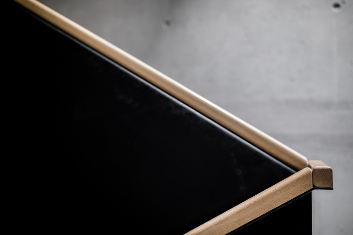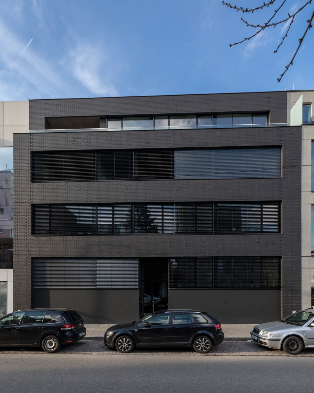 Fasádu objetu tvoří černé lícové zdivo, společné prostory objektu jsou ponechány v pohledovém betonu.