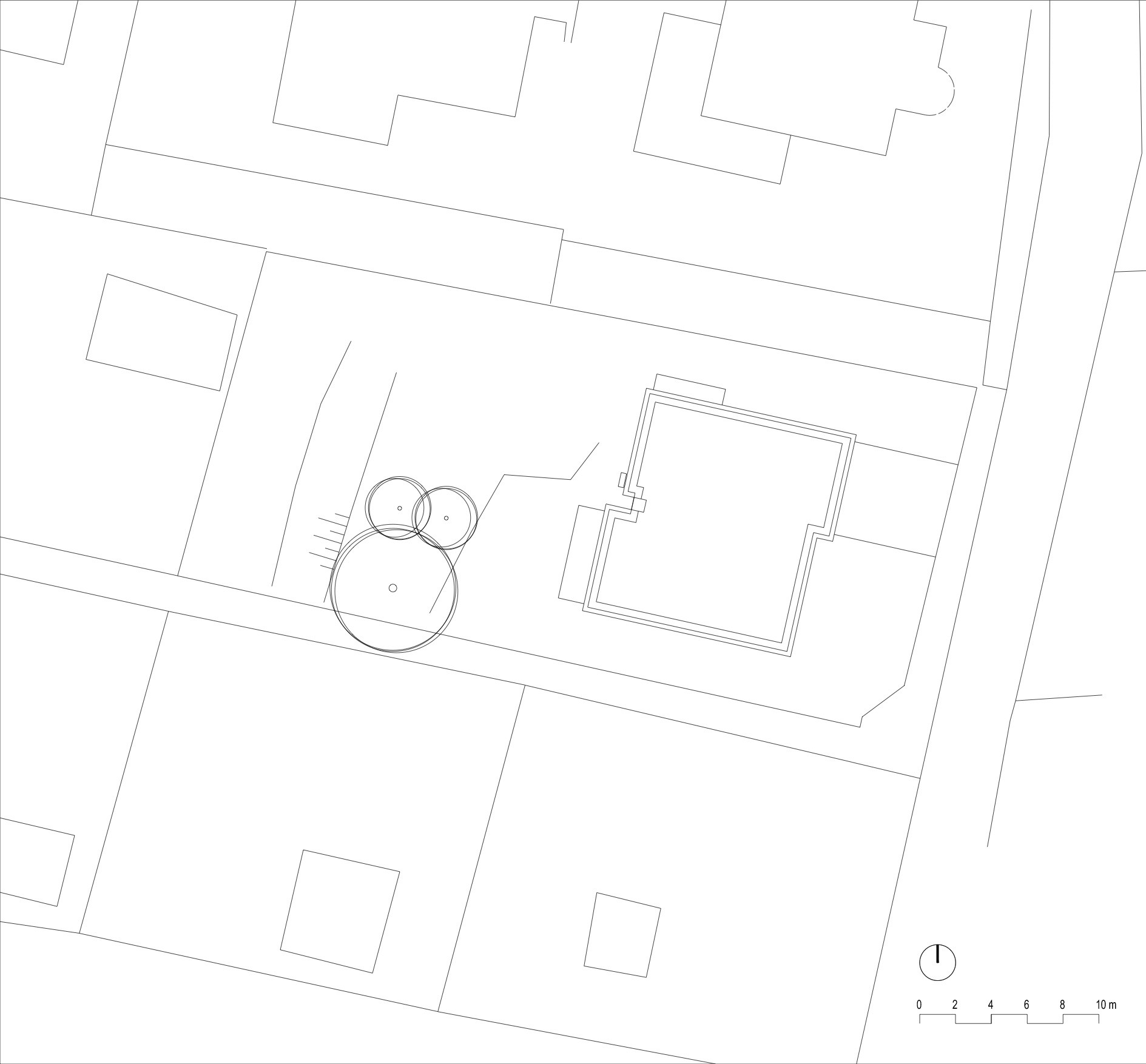Protáhlá parcela situována na rozhraní zahrádkářské kolonie a původní zástavby rodinnými domy se svažuje k severozápadu a nabízí výhled na protější zalesněný horizont a východní okraj města. Osazení domu využívá přirozený průběh terénu a rozděluje jeho provoz do tří samostatných celků.