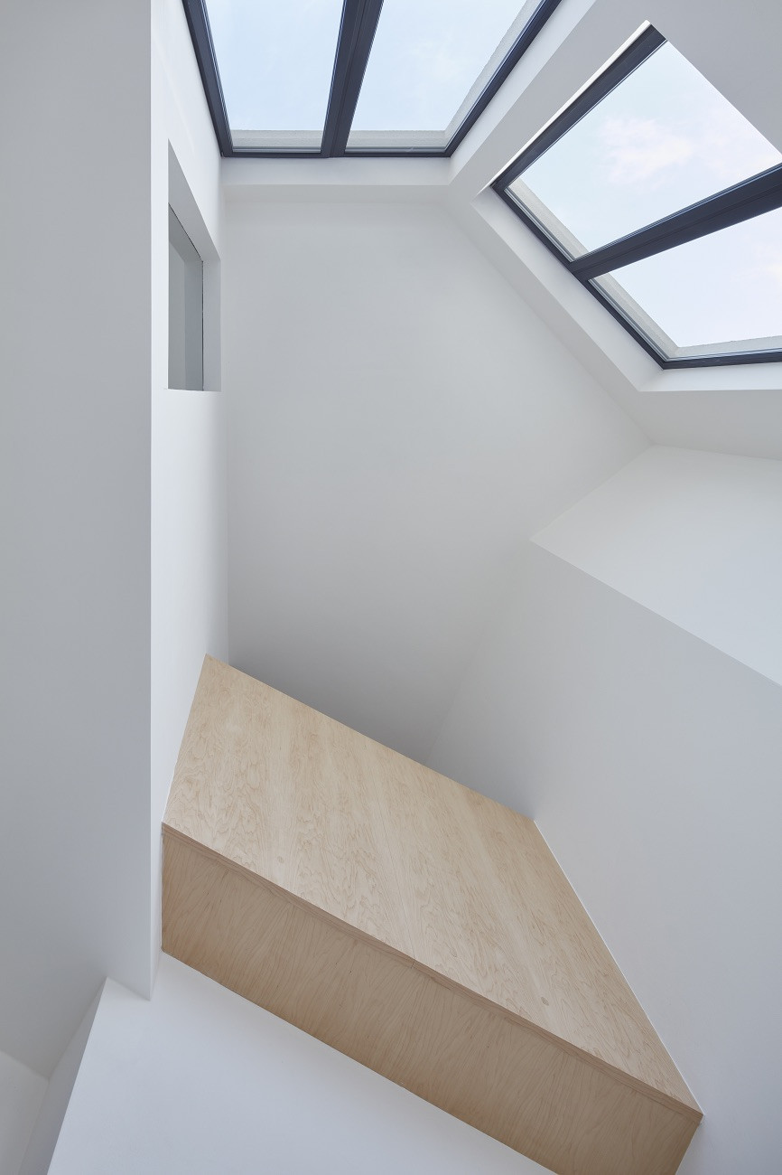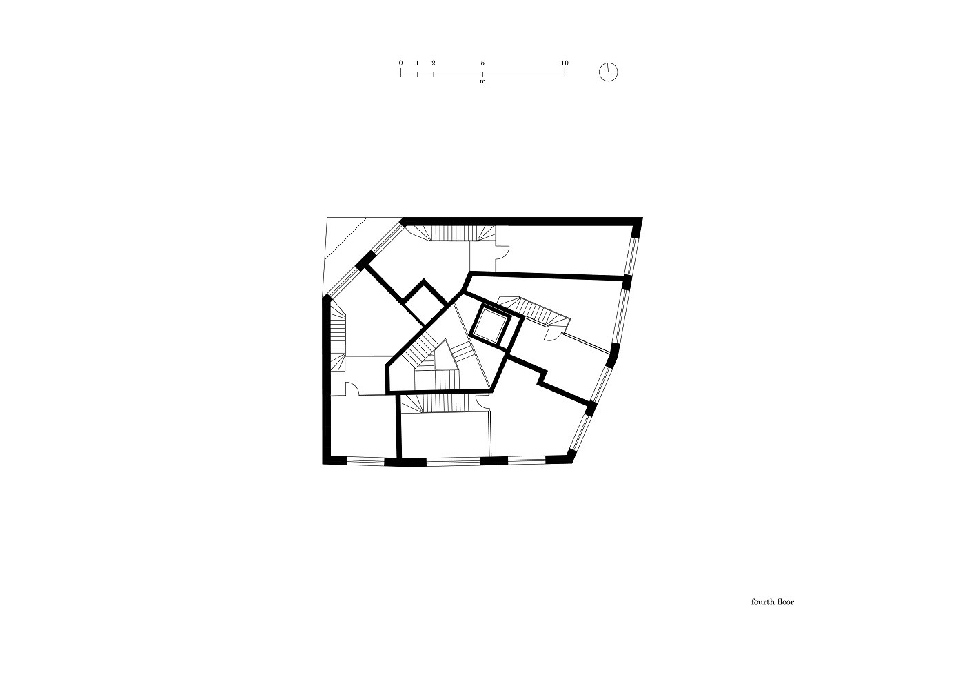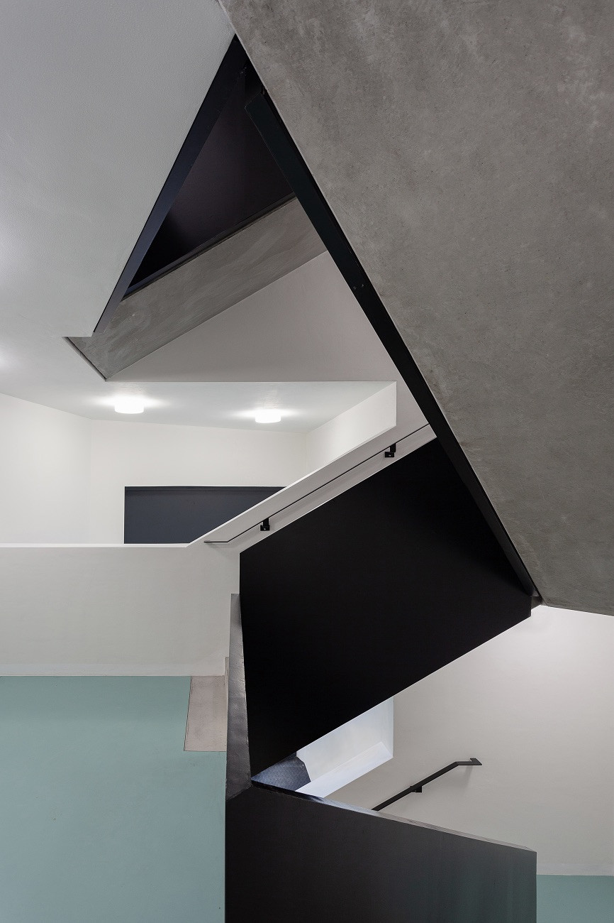 Dominantním prvkem stavby jsou rozměrná okna, odkazující na průmyslové dědictví čtvrti, jež zvenku fungují jako klíč k pojetí konkrétních jednotek. Jejich rozměry napříč patry výrazně gradují od dvoupodlažního komerčního přízemí přes malometrážní byty až po lofty s privátní terasou a šestimetrovou světlou výškou. Jádrem domu se točí sochařsky pojaté schodiště, jež se vyrovnává s limitovanou plochou parcely 269 metrů čtverečních. Výsledná forma nepravidelného polygonu udává bytům atypický ráz a prostorovou jedinečnost. V přízemí se kolem ústředního schodiště vine komerční plocha pro jednoho až dva nájemníky, druhé a třetí patro nabízí celkem osm menších bytových jednotek o výměře 40 až 55 metrů čtverečních, ve čtvrtém se nachází čtveřice menších loftových bytů s dřevěnou vestavbou a v pátém dva rozměrné lofty s vestavbou, soukromými terasami a výrazně převýšeným interiérem. Všechny pak propojují materiály železobetonu, jasanového dřeva a bílých zdí i skvělé výhledy do okolí – směrem na jih na budoucí náměstí a malebnou Pálavu, na sever pak do vnitrobloku a také na centrum města včetně všech pamětihodností jako Špilberk či Petrov.