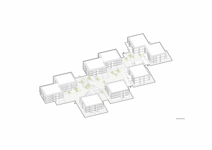 Prostorový koncept souboru o celkovém počtu 336 bytů na ploše pěti hektarů je založen na pěti samostatných blocích uspořádaných kolem centrálního veřejného parku, při vstupu do území doplněného o obchody v parteru a novou zastávku MHD. Park svojí otevřeností zajišťuje pěší prostupnost a napomáhá dobré orientaci v celém území. Každá z pěti etap je tvořena skupinou viladomů na společné podnoži, tvoří tak samostatný celek s vlastním vnitroblokem – poloveřejným prostorem, který slouží převážně obyvatelům dané etapy a přirozeně rozvíjí jejich komunitní život. Nadzemní podlaží viladomů obsahují byty v maximálním počtu tři na podlaží. Společný vchod a prostory tedy sdílí šest až devět bytů, díky čemuž je zaručena vzájemná sounáležitost ke společným částem domu. Téměř každý byt v území má velkorysou lodžii, příčně provětranou dispozici, ideální orientaci vůči slunci a výhled do parkové zeleně i soukromého vnitrobloku.
