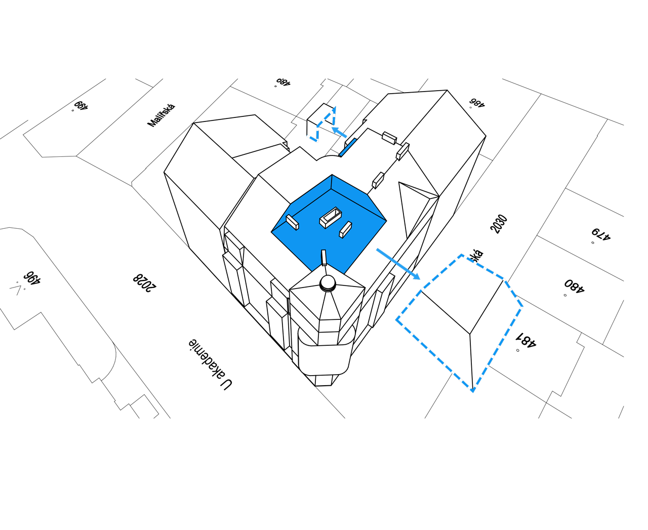 Účelem rekonstrukce bylo zvýšit standart a kapacitu dožívajícího činžovního domu z počátku 20. století. Zvýšení komfortu napomáhá také návrh osobního výtahu umístěného v zrcadle domovního schodiště, vybudování podzemní garáže a nových skladovacích prostor pro obyvatele domu, včetně kočárkárny. Ve vyšším standardu budou i nové mezonetové byty.