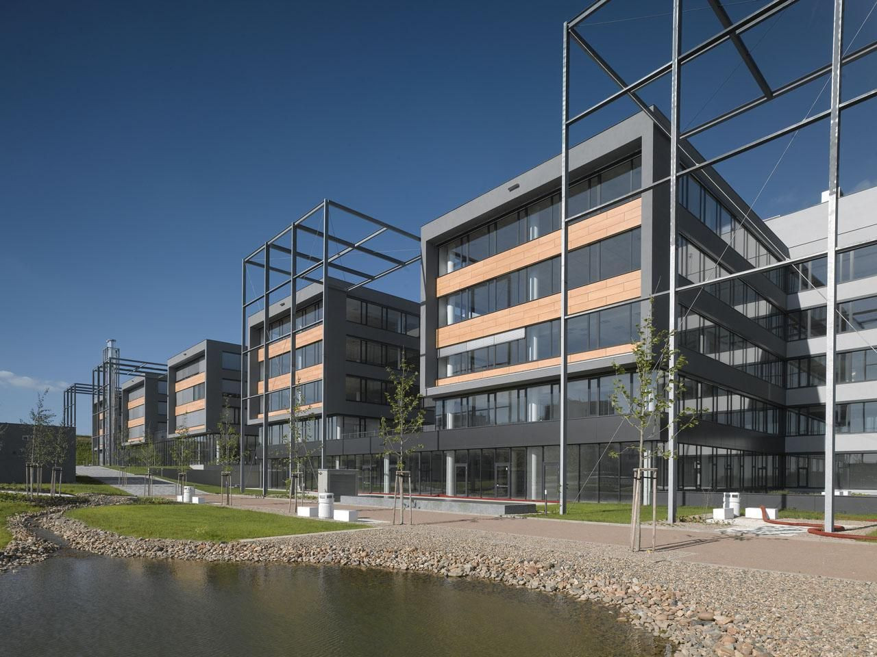 Jediná stavba, která narušuje jinak harmonický řád celkového rozvržení, je tzv. dům Krystal, sídlo společnosti Siemens. Je to jedna z prvních budov, která v novém areálu vznikla a viditelně ční nad okolním terénem. Svou dominantou představuje jakýsi maják této administrativní čtvrti.