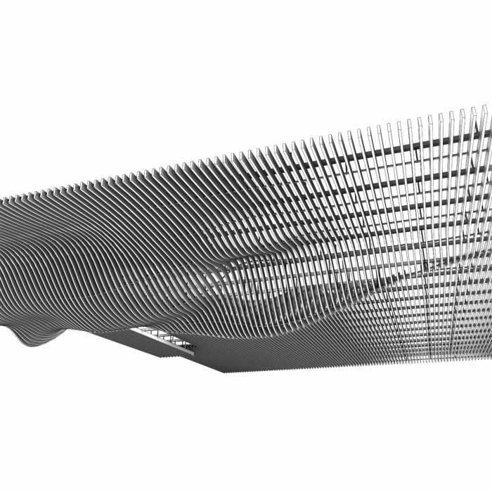 Výrazná a silná budova, která svým projevem akcentuje vztah investora k nedílné součásti jeho zájmu – umění, dala autorům možnost v interiéru využít organického zakřiveného tvarosloví kontrastního vůči rigidnosti fasády.Vstupní hale dominuje dvacet metrů dlouhé osvětlení z českého křišťálu. Umělecké svítidlo Stellar Dust představuje jednu z největších novodobých světelných instalací u nás. Celkem 726 křišťálových kapek vzniklo dle návrhu architektů ve sklárně Bomma ve Světlé nad Sázavou. Na světelnou vlnu navazuje vlna dřevěná. Oba tyto prvky jsou vytvořeny pomocí unikátních parametrických definic. Zatímco Stellar Dust vychází z prostorových vazeb ve vstupní lobby, zakřivený podhled v kavárně, jež volně navazuje na vstupní halu, je algoritmickým přepisem geometrie ženského těla.