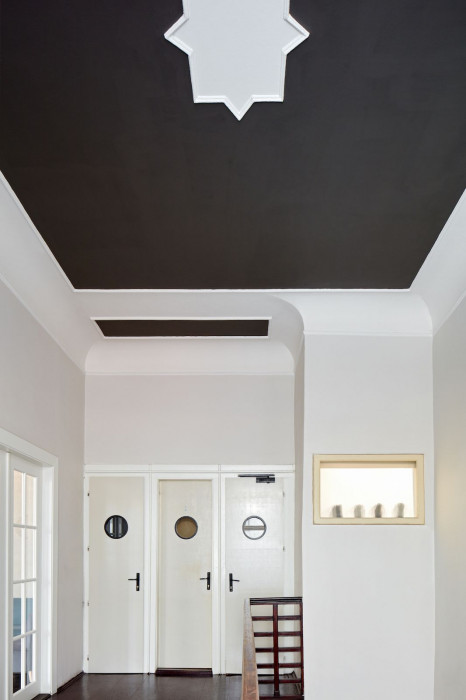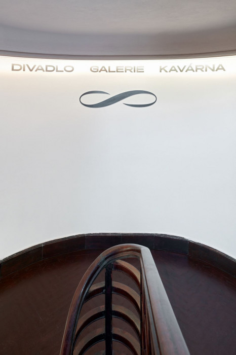 Návrhem umocňujeme atmosféru sálu z počátku 20. století. Ponecháváme pro NoD typický centrální bar s levitující sochou Zlaté kosti od Jiřího Davida a vyvýšené pódium k sezení. Na zdobnou římsu v čele sálu navazujeme římsou novou, která lemuje celý prostor kavárny. Parkety z kouřového dubu, bílá mozaika baru a tradiční kavárenské židle spolu s mosaznými prvky odkazují k době vzniku domu.