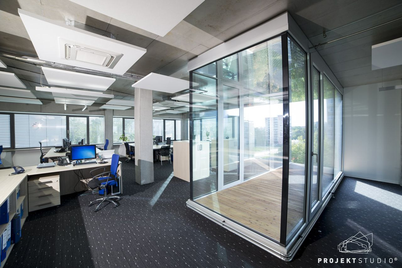 Okna, které jsou osazena do líce fasády, byla v počátku v každém patře navržena jako pásová, ale po konzultaci s jednotlivými budoucími majiteli se výsledek přizpůsoboval jejich požadavkům. Tak také vzniklo okno o rozměrech 4,1 × 4,5 m v osmém patře. Každé podlaží je provozně řešeno jako samostatný celek. Plocha každého podlaží o 240 m2 se tak díky zdvojeným podlahám, ve kterých jsou umístěny veškeré rozvody, stává nejvyšší možné míře variabilním prostorem.