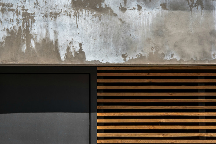 Použité materiály jsou běžné, odolné a zároveň levné. Suterén - podnož garáží a technické zázemí je betonové (z bednících tvarovek), opatřených stěrkou. Strop nad suterénem monolitický, železobetonový. V jednotlivých bytech skládaný z předepjatých železobetonových panelů. Horní patra jsou zděná z cihelných tvárnic, zateplená tepelnou izolací a omítnutá. Veškeré výplně otvorů, ocelová zábradlí, stříšky tvořící závětří nad vstupem a venkovní svítidla jsou antracitové. Venkovní dřevěné treláže jsou z nehoblovaných modřínových latí bez povrchové úpravy.
