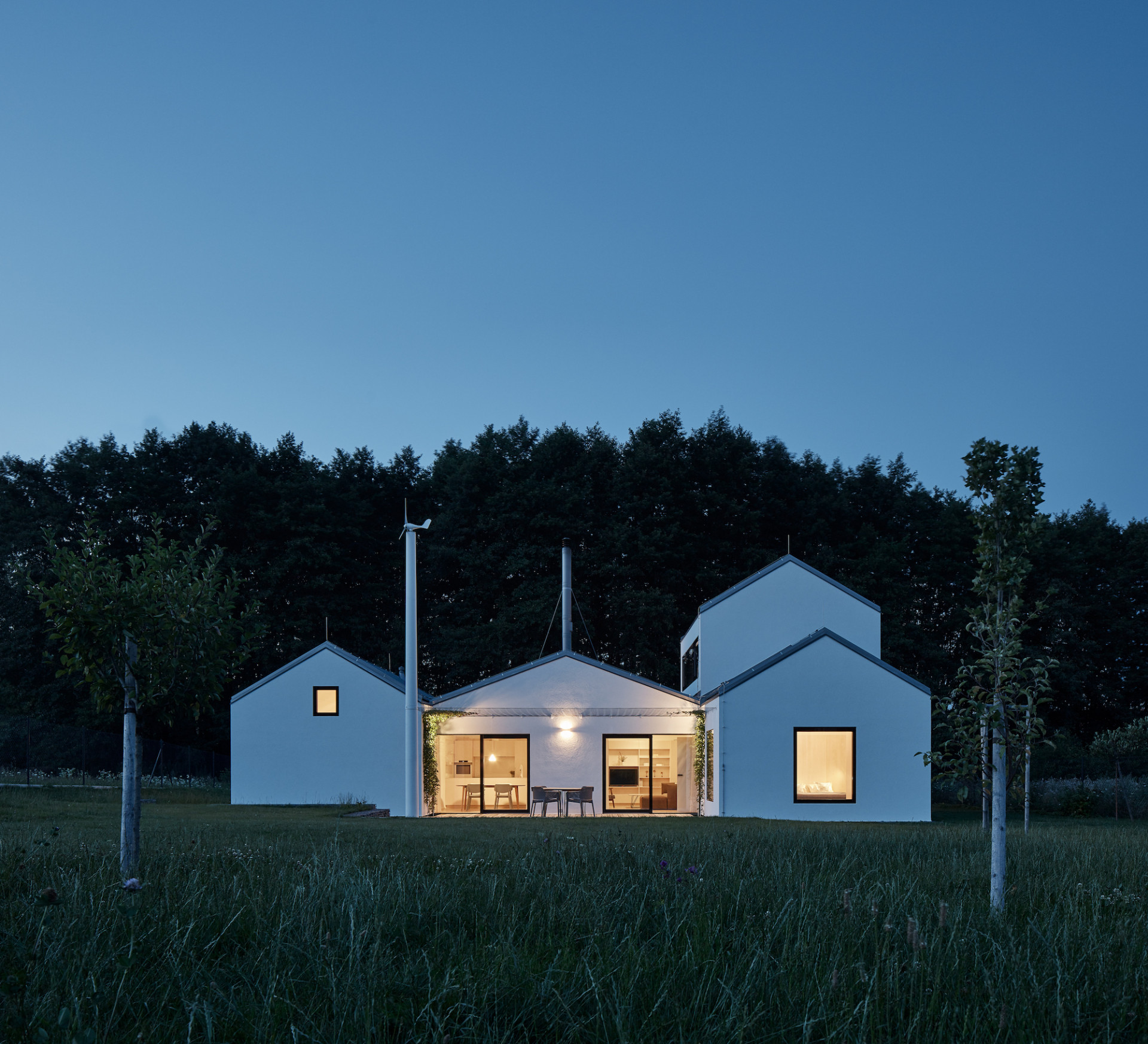 Rodinné sídlo stojí doslova na zelené louce, nedaleko remízku, v příjemné krajině středních Čech. Dům poskytuje zázemí pro tři generace jedné rodiny. Dědeček, babička, táta, máma a dva kluci tu mají dost prostoru trávit společně léto a spoustu víkendů během celého roku.