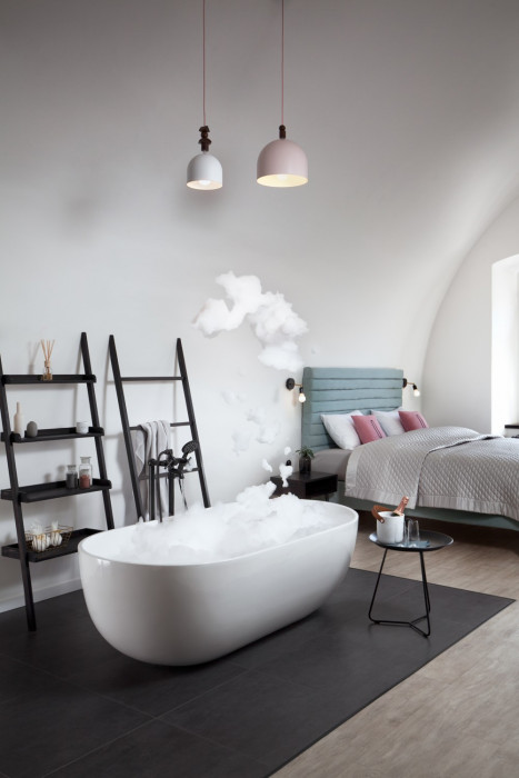 Většina vybavení vznikla na zakázku. Pro pokoje byly na míru navrženy postele, zrcadla, svítidla, poličky i vybavení koupelen ve spolupráci s lokálními výrobci, např. značkami Master & Master, nebo RAV Slezák. To vše designérka elegantně sladila se starým modernistickým designem minulého století, na jehož výběru spolupracoval Miroslav Bednář z pražského obchodu Retroobjects, či současnými elegantními detaily, včetně bakelitových vypínačů Berker nebo španělských svítidel Marset. Svítidla do interiéru dodávaly také společnosti Bulb a Ewerel. Minimalistický navigační systém, který vychází z komplexního vizuálního stylu hostelu, pochází z dílny českého grafického designéra Jana Košátka. Některé prostory hotelu jsou také dekorovány originálními uměleckými díly českého výtvarníka Davida Minaříka.