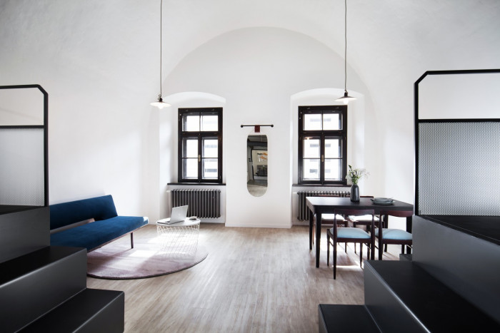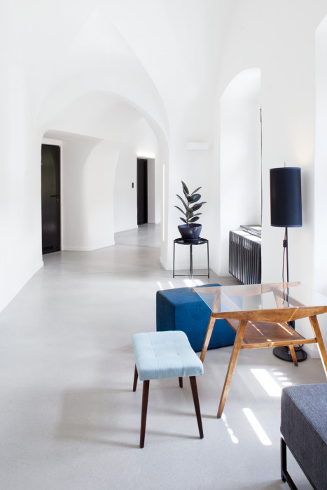 Celá koncepce hostelu vznikla od nuly, včetně veškerého vybavení a výtvarného řešení. Hlavní myšlenkou bylo podtrhnout historický genius loci a citlivými úpravami ho obohatit o současný design. Na podobě hostelu pracovala dva roky interiérová designérka a scénografka Denisa Strmisková. Organicky zaklenutá chodba, která vede od recepce do všech pokojů je z každého úhlu pohledu jiná a při jejím procházení překvapuje v každém momentě. Její formy ještě zvýrazňuje nenápadná a přesto sofistikovaná práce se světlem, pro kterou se autorka inspirovala ve scénografii. Čistě bílá omítka kontrastuje s černými detaily i citlivým výběrem pastelových barevných odstínů, kterými je čalouněn jednoduše navržený sedací nábytek, seskupený do podoby intimních zón.