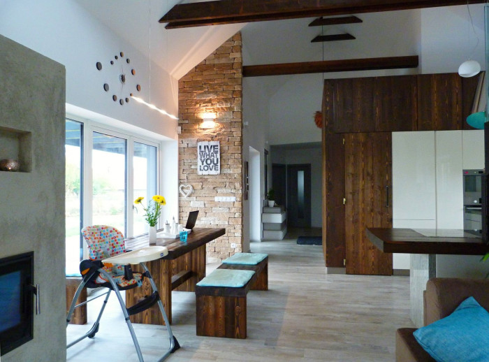 Exteriér a interiér domu může mít nekonečně podob, podle toho, jaký je životní styl, vkus a preference jeho majitelů. Do jeho podoby se neodmyslitelně promítá i okolní krajina a kontext místa. Podle těchto specifik architekt dům a jeho podobu vždy projektuje. Hlavním cílem majitelů této dřevostavby bylo vyměnit ruch velkoměsta za klid malé vesničky, žít zdravě v blízkosti lesů, venkovských chalup a mít možnost jezdit do práce na kole.