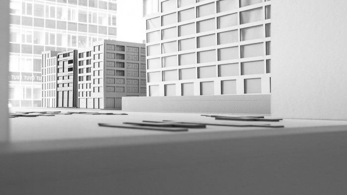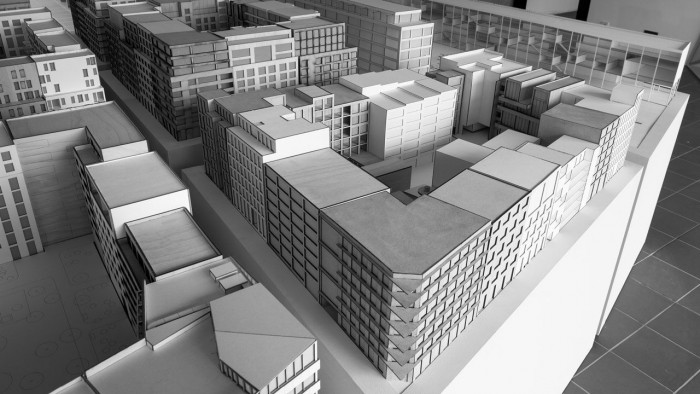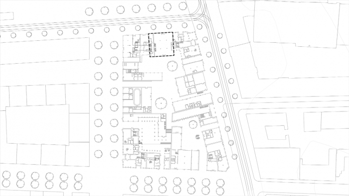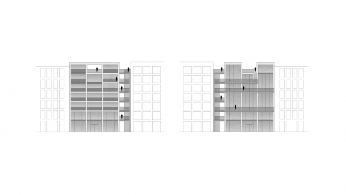 Prostorové a světelné příležitosti poskytují vertikální skleněné skládací dveře. Míra intimity se nastavuje neprůhlednými závěsy. V návrhu hraje významnou roli i zeleň, kdy terasy v sedmém podlaží zastupují zahrady rodinných domů a severní fasáda disponuje integrovanými truhlíky s vysokou trávou Miscantus, které tak i opticky znázorňují strukturu vnitřní dispozice. Společná kolárna, dílna a kóje jsou umístěny v suterénu. Parkování v celém bloku je zajištěno za pomocí dvou sdílených parkovacích domů.