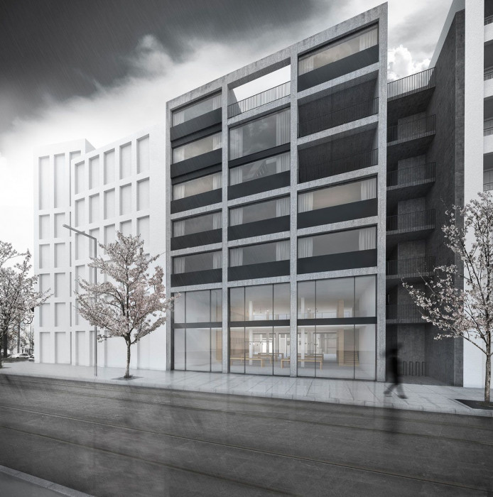 Investor je obchodníkem s fototechnikou a jedním z jeho základních požadavků bylo vytvořit velkorysé, prosvětlené a vzdušné komerční prostory, které budou maximálně těžit ze své lukrativní situace v parteru. Ty také zasahují do suterénu, kde se nachází konferenční místnost. V parteru je dále situován průchod, který zajišťuje komunikaci mezi ulicí a vnitroblokem a vertikální komunikace v podobě výtahu a schodiště.