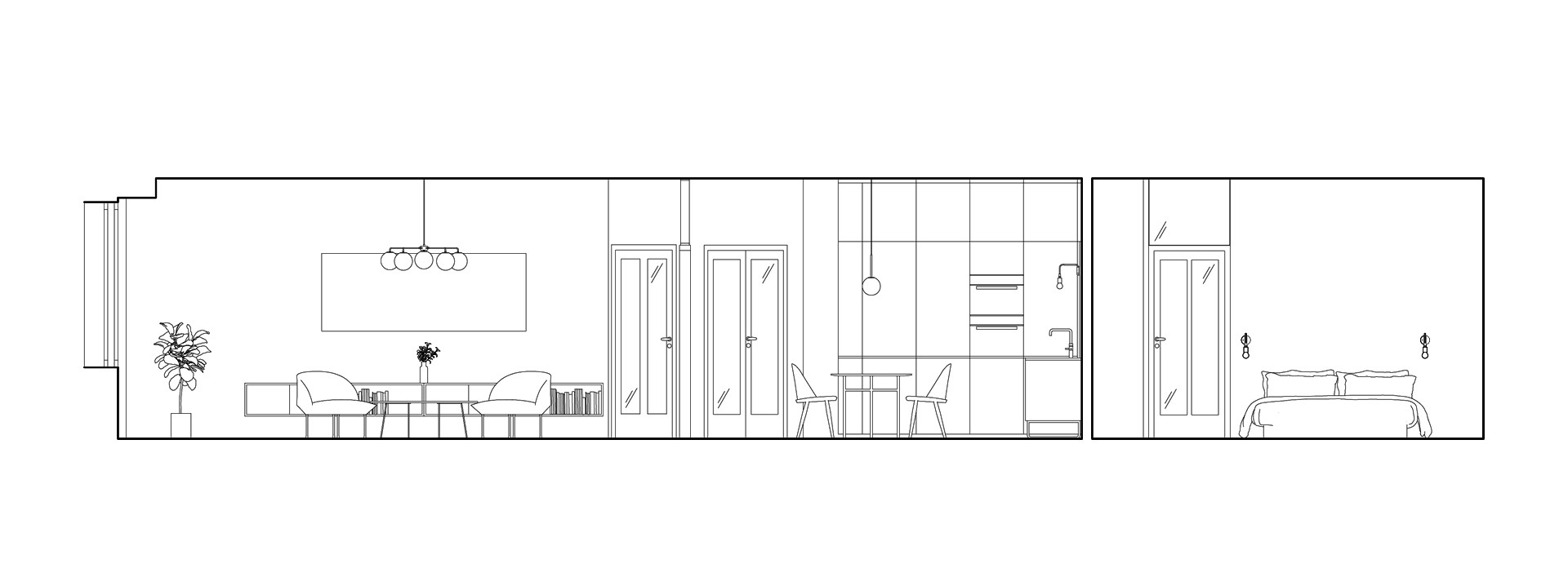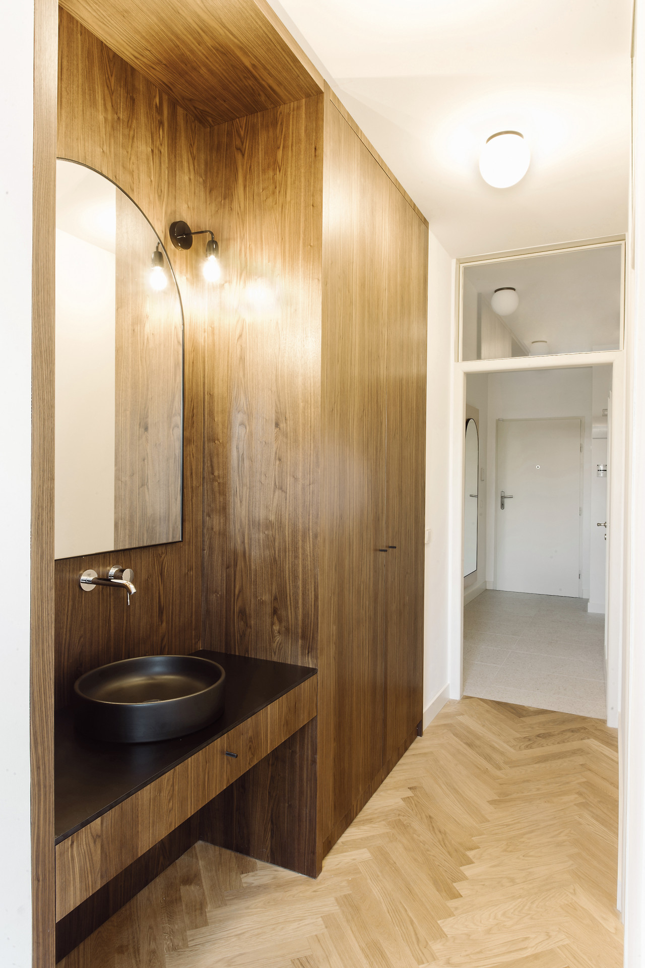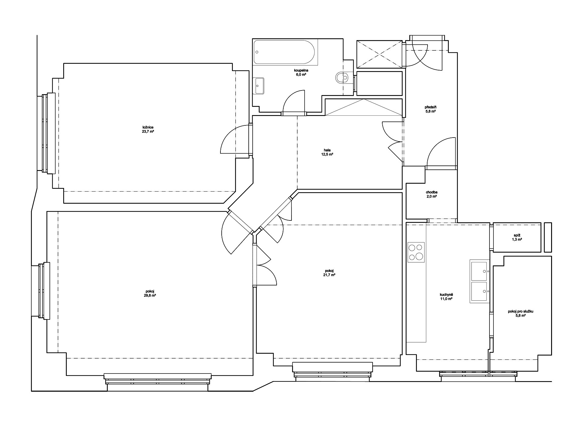 Respektujeme paměť místa, a tak se v co největší možné míře snažíme zachovat dobový charakter bytu. Dispozici citlivě adaptujeme pro potřeby dnešních obyvatel, zvláštní péči přitom věnujeme řemeslné repasi všech dochovaných původních prvků interiéru.