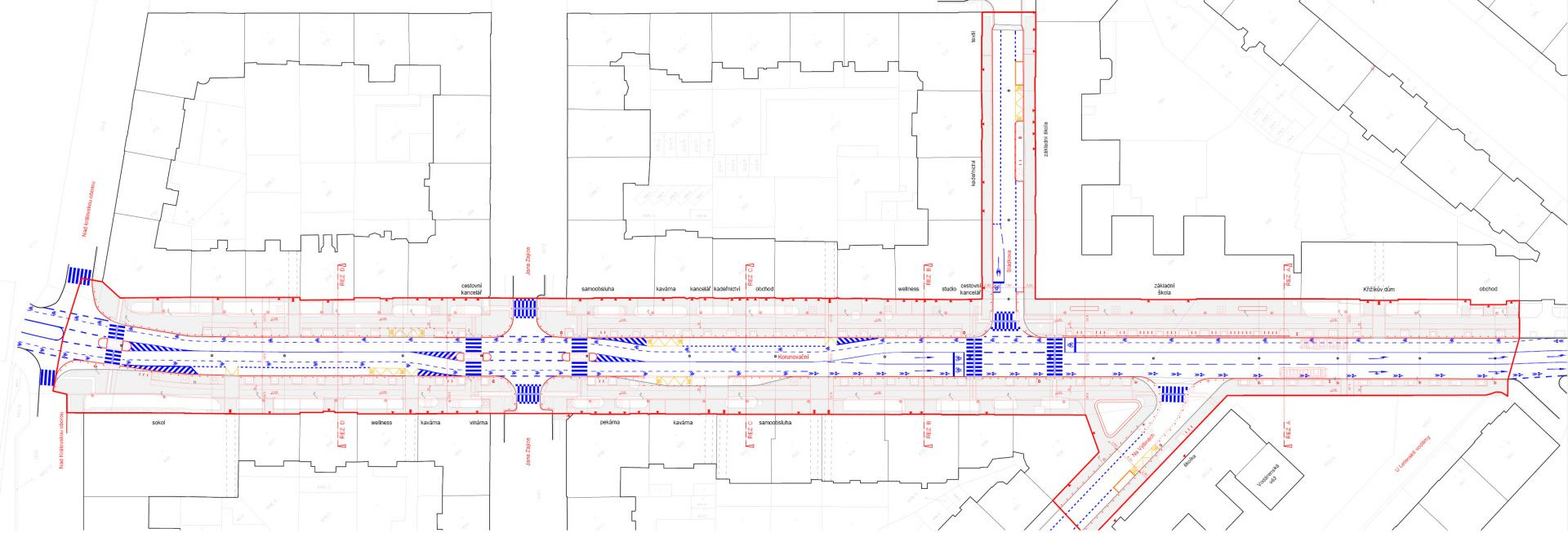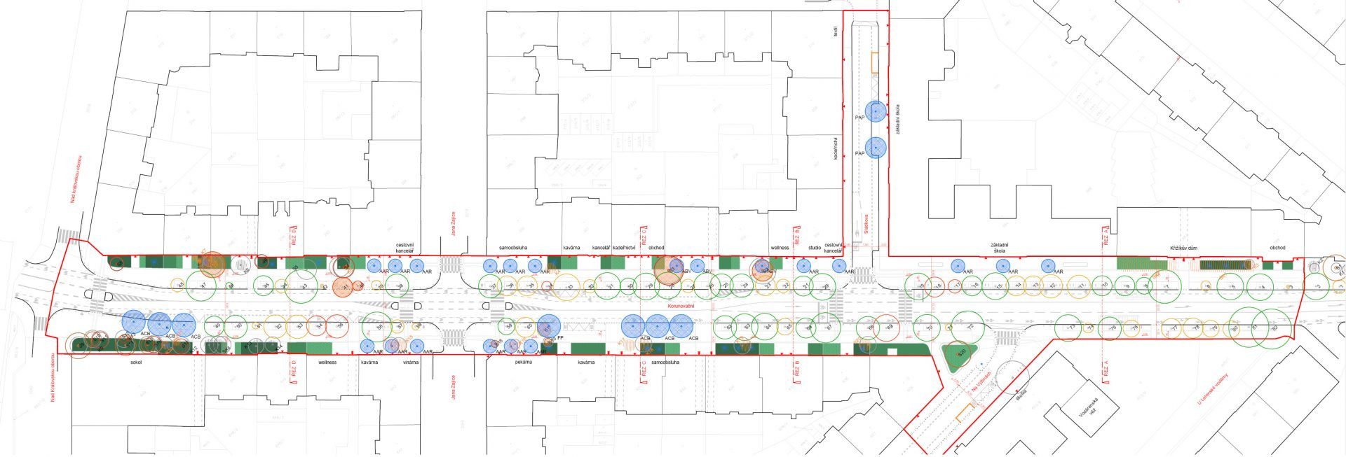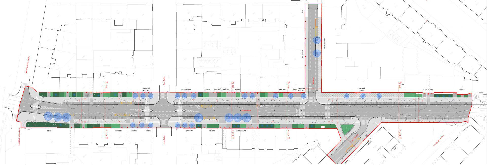 Architekti z notoricky známého žižkovského okrašlovacího spolku edit! se znovu vrátili na Letnou! Zadání přišlo z městské části pražské sedmičky. Výzvou pro nás bylo si poradit s letenskou třídou Korunovační, která se v současnosti skloňuje především v dopravním zpravodajství. V koordinačně koncepční studii jsme se museli vypořádat s již připravovanými, ale vzájemně nezkoordinovanými projekty na obnovu stromořadí, vodovodních řadů, na opravu vozovky či s třemi různými projekty BESIPu. K projektu jsme však přistoupili s ambicí sobě vlastní – chceme proměnit velkoryse založenou, avšak zanedbanou ulici na reprezentativní obytnou městskou třídu propojující Letenské sady se Stromovkou. Před samotným zadáním našemu studiu byla do projektu zapojena veřejnost prostřednictvím dotazníku “Společně po Letné”. V červnu 2021 proběhla participace se školáky ZŠ Korunovační a setkání s veřejností ve Vodárenské věži v ulici Korunovační, kde byl představen koncept studie k připomínkám. Výsledný návrh studie je tedy konsensuálním výsledkem jednání s laickou veřejností i odborníky z řad zástupců MČ Prahy 7, památkářů, zástupců IPR a architektů.