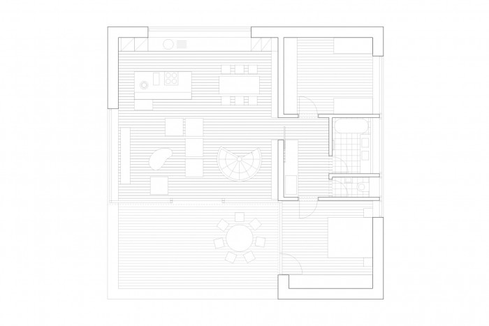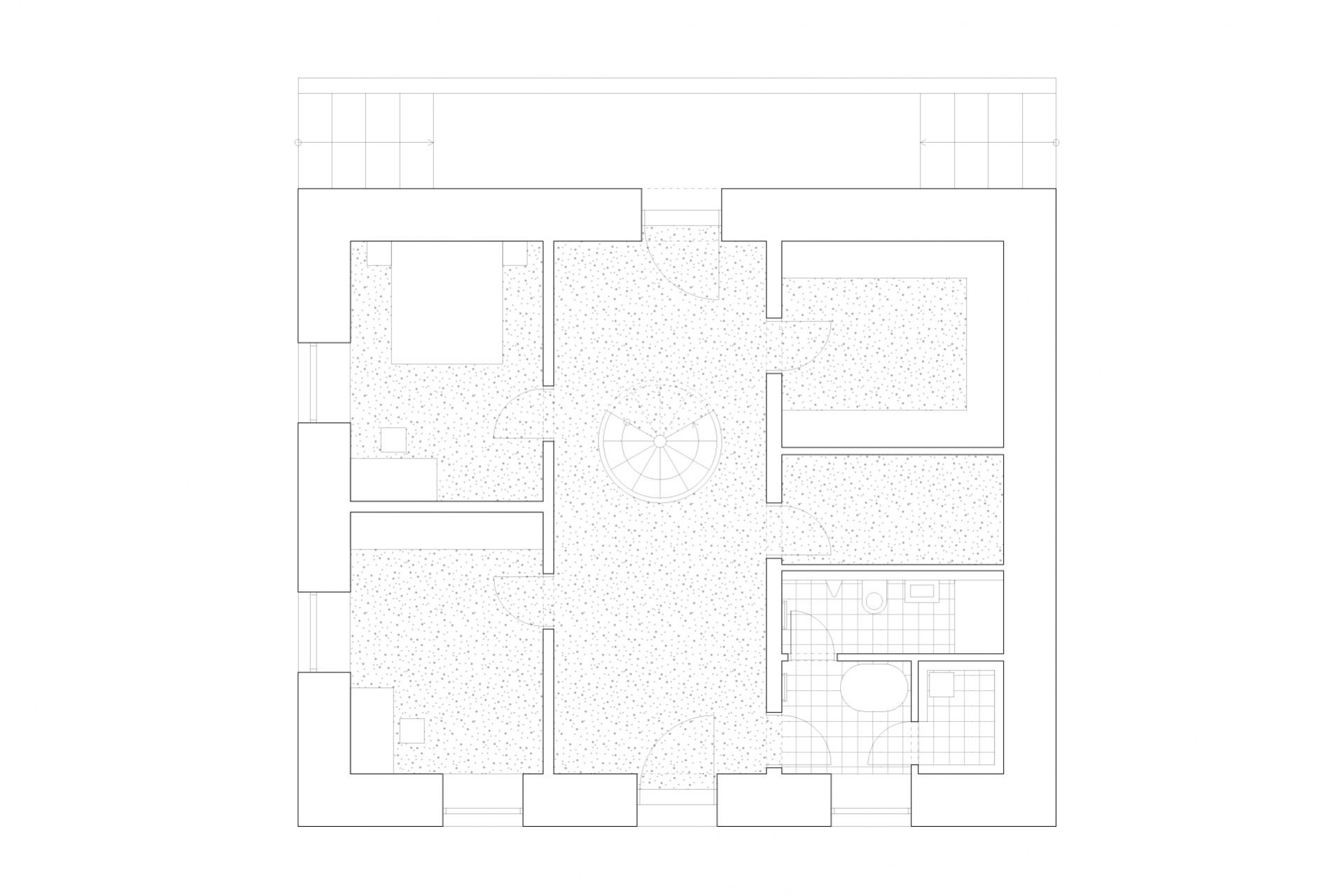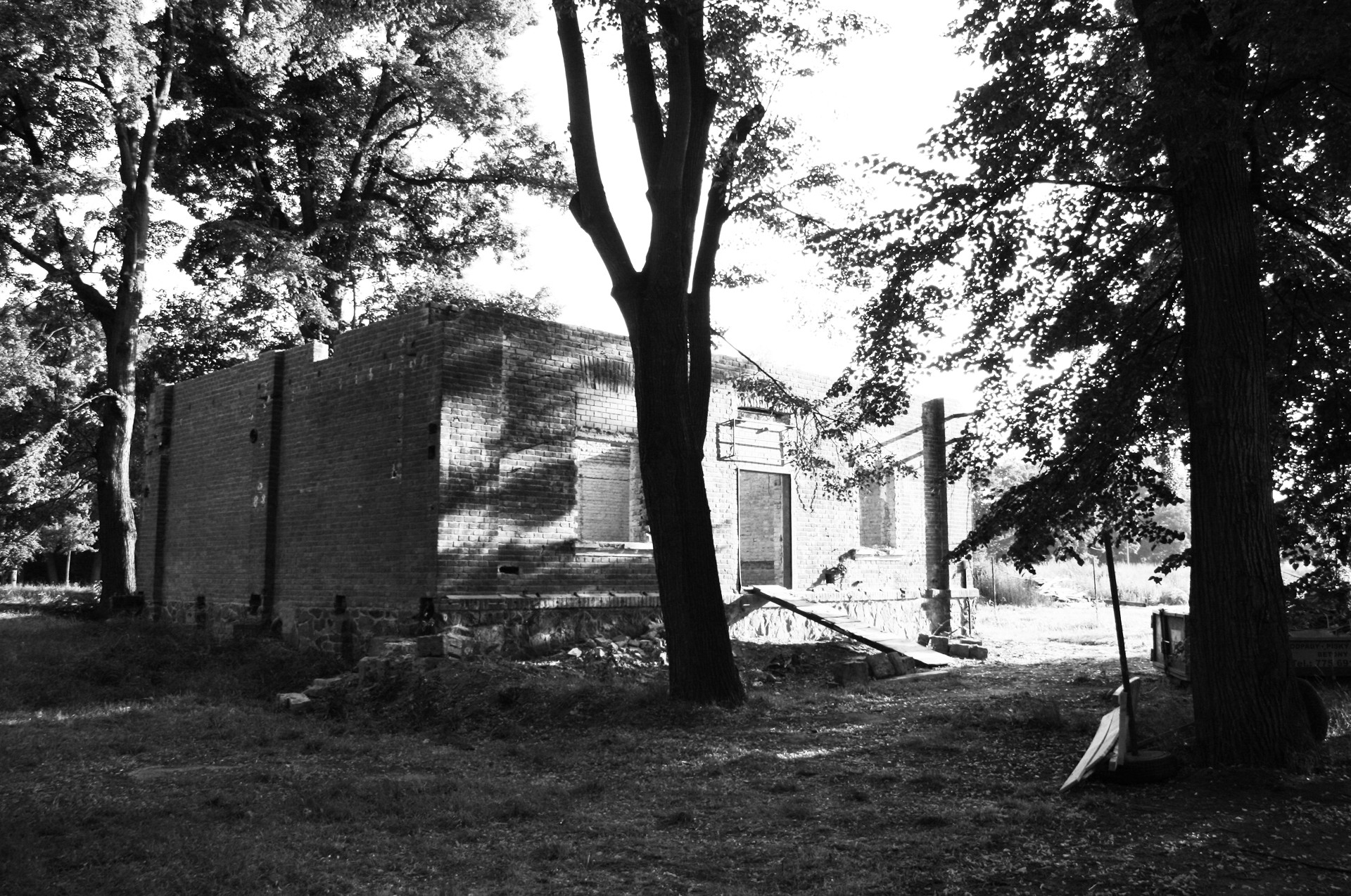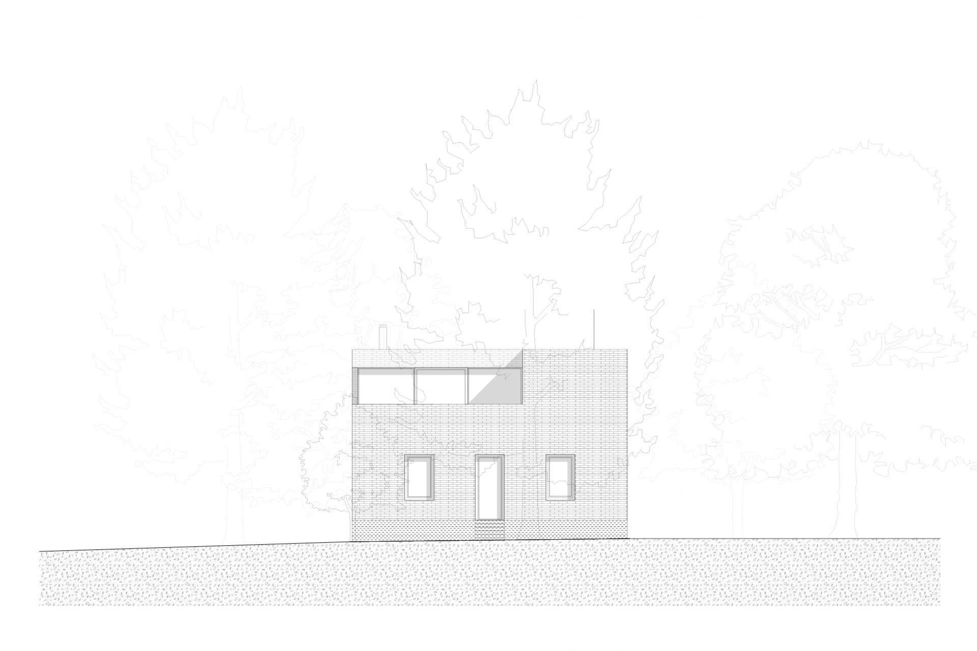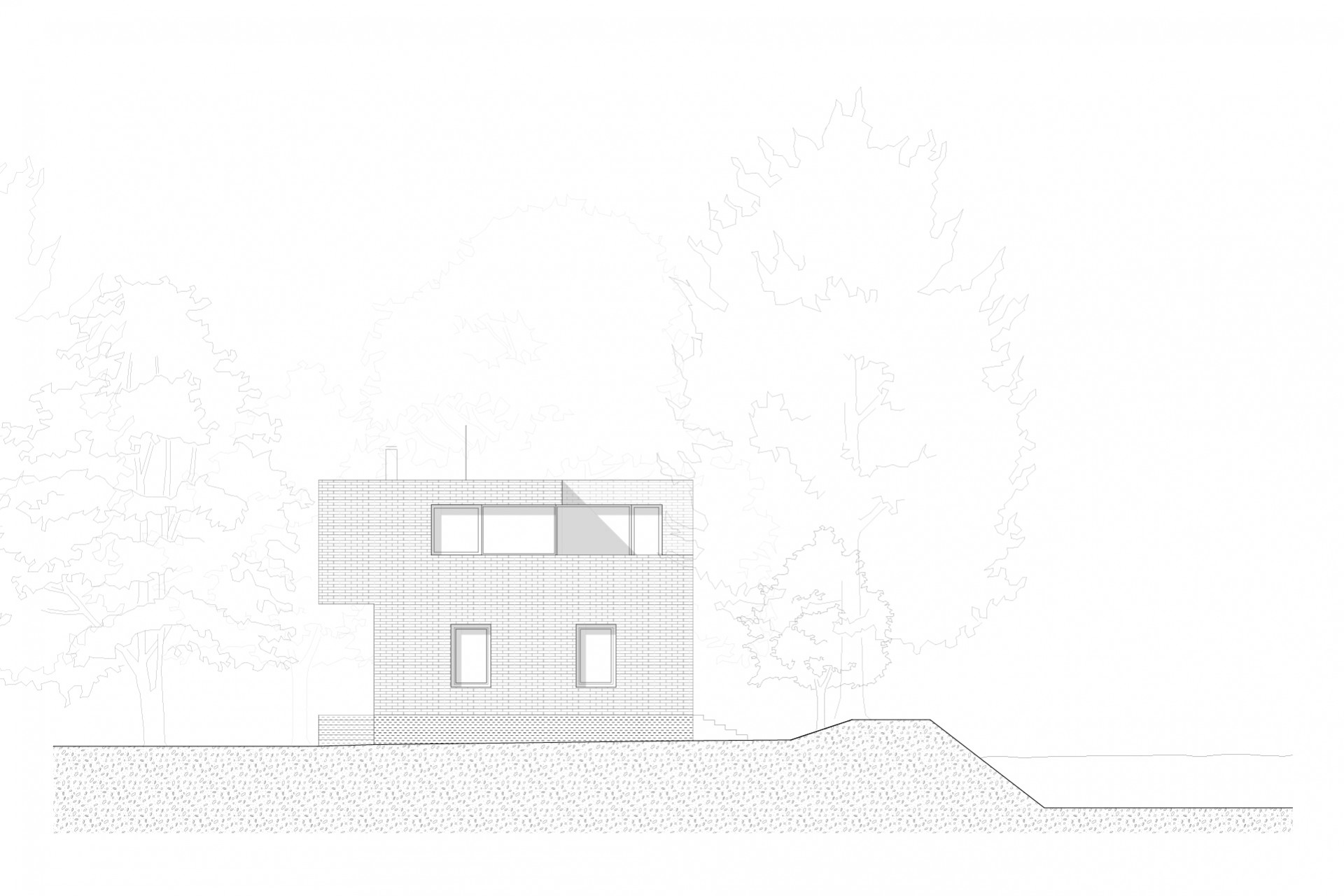 Původní strážní domek Rakousko-uherské armády na Císařském ostrově stál nevyužívaný mezi stromy bez povšimnutí několik desetiletí. Z původního objektu se zachovalo pouze masivní torzo z pohledových, ostře pálených cihel takzvaných “zvonivek”. Objekt je umístěn v záplavové zóně a už jeho původní založení tomu odpovídalo. Návrh přidává na odhalenou korunu stávajících obvodových zdí nový betonový objem, který v sobě absorbuje všechny hlavní obytné místnosti již ve výšce nad úrovní stoleté vody. Připomenutím původního objektu je materiálové sjednocení obou pater do masivního artefaktu z pohledových cihel.