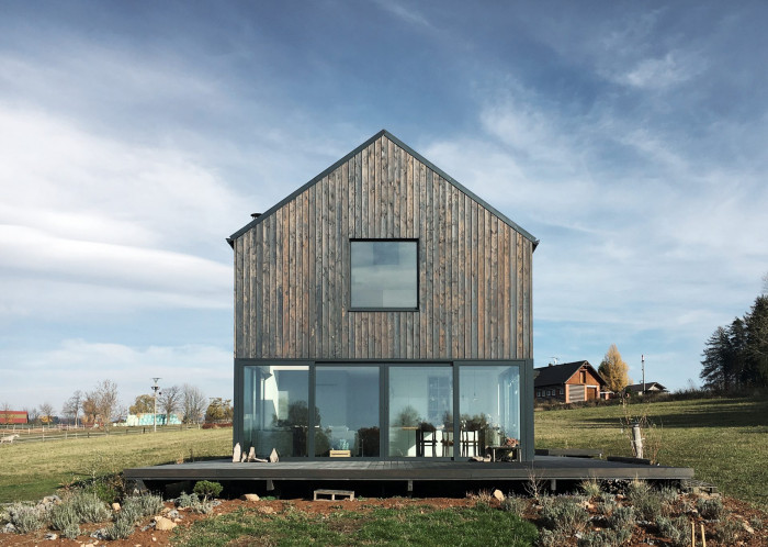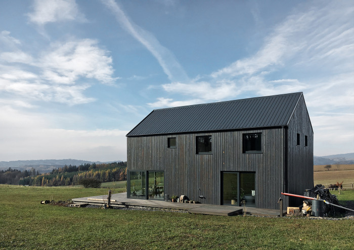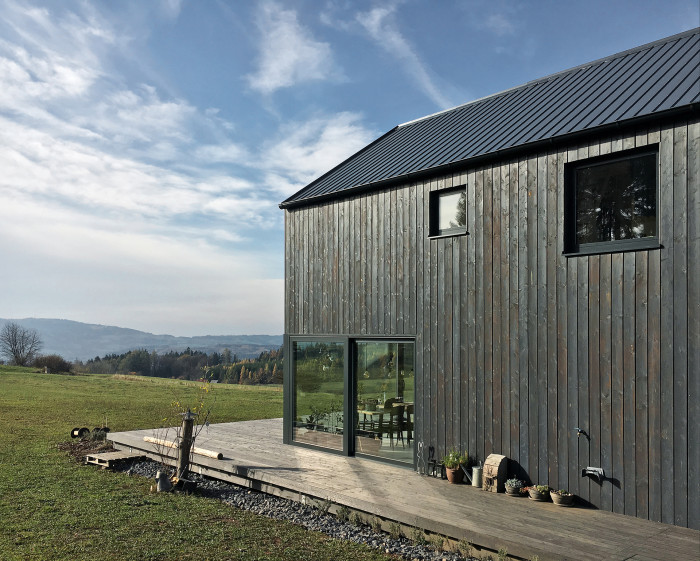 Na mírně svažité louce v Podkrkonoší s nádherným výhledem jsme navrhli objekt sušárny bylin. Jednoduchý dvoupodlažní objekt se sedlovou střechou nemá ambici vyčnívat i když se mu to díky solitérnímu umístění moc nedaří, a proto má přísnou černou fasádu, která mu z pohledu od cesty umožňuje splynout s tmavým remízkem za ním. Hlavní obytná místnost s vloženou galerií je ze tří stran prosklena a parazituje na výhledech do okolí. V patře jsou umístěné malé pokoje s mini – galeriemi na spaní. Na dům navazuje bylinná zahrada dělená do jednotlivých permakulturních zón.