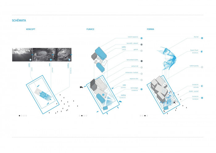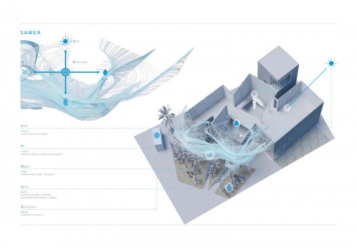 Návrh se odkazuje k systému S.A.W.E.R., který je srdcem a technologickým jádrem pavilonu. Jeho podstatou, projevující se na mnoha úrovních, je transformace. Proměňuje vzduch ve vodu, suchou poušť v kvetoucí zahradu i pohled lidí na Českou republiku.