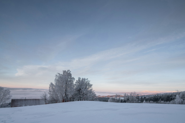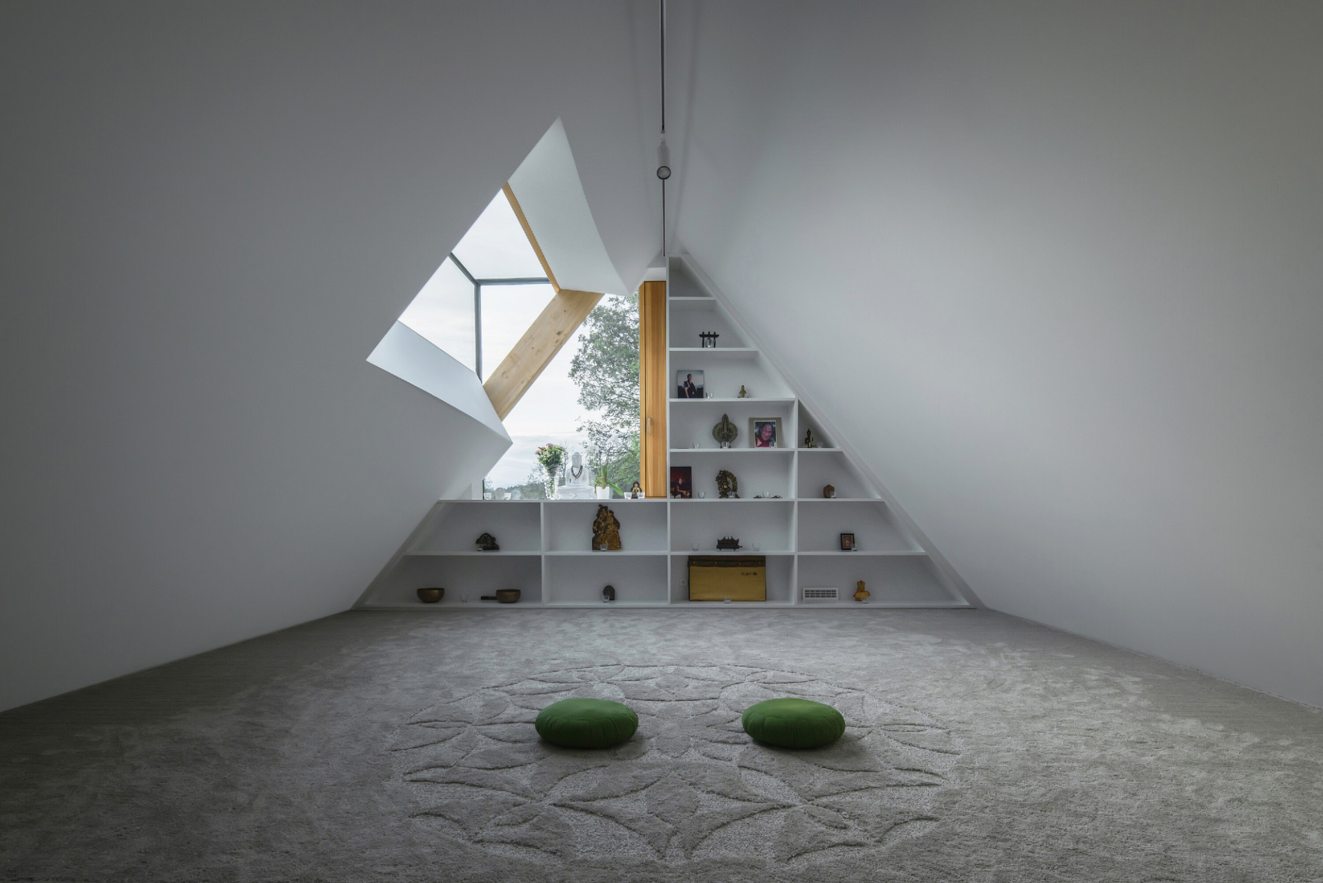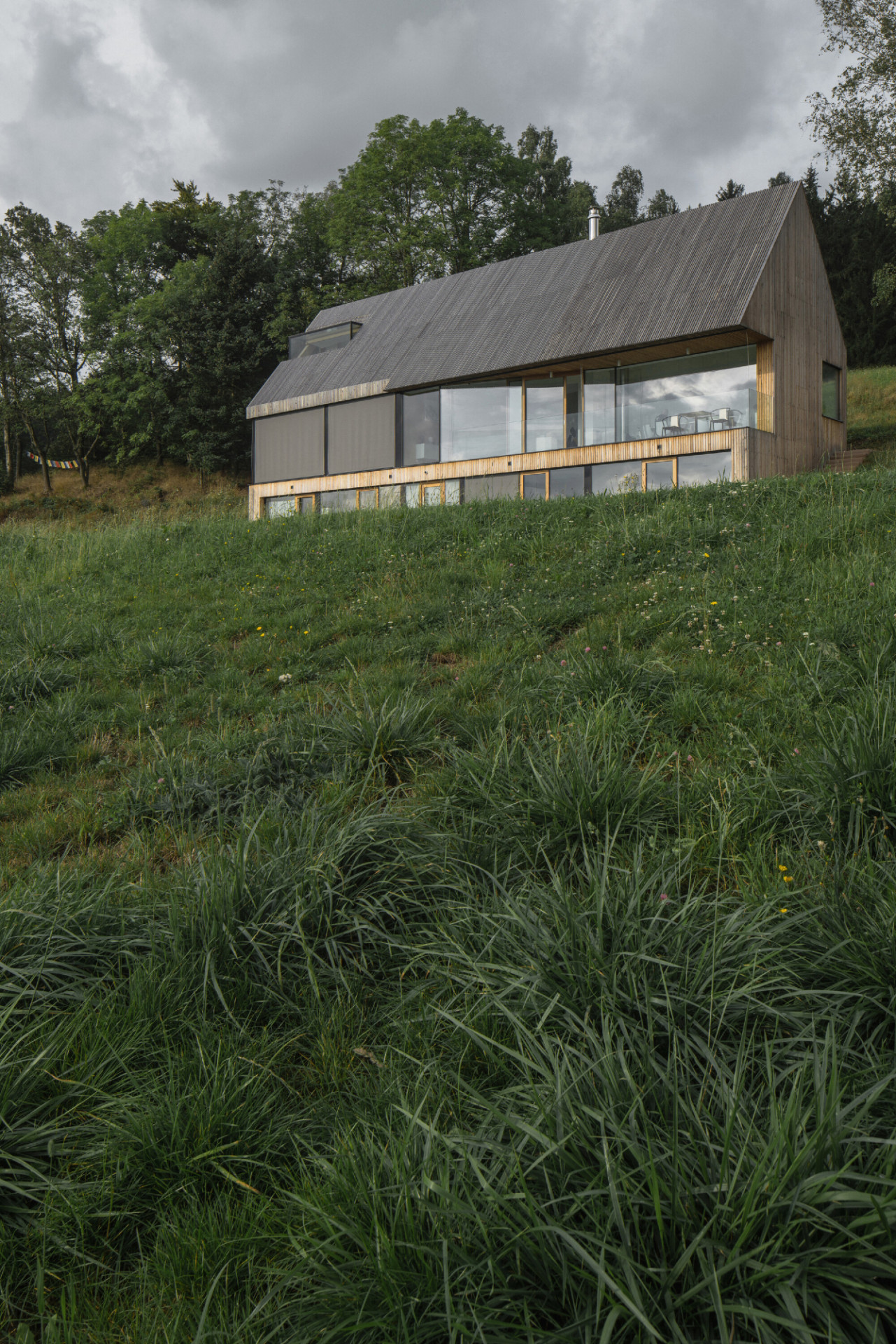 Zatímco zvenku je celý dům včetně střechy obložen modřínovými lepenými latěmi, uvnitř je celý čistý, bílý včetně podlah, aby sloužil jako bílý papír pro zakomponovávání umění v podobě pozitivního myšlení. Takto sám investor dům vnímá. Dlouhá cesta lesem navozuje nedočkavost a stupňuje zážitek z jeho atmosféry požadovanou měrou. Bonusem je pak přiměřená velikost domu a jeho příznivé úsporné užívání a udržování v daném místě. K tepelnému čerpadlu časem přibude přístřešek na auta vybaven solárními panely a skleník na zeleninu.