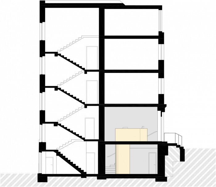 Do stávajícího činžovního domu z 20. let minulého století byla vestavěna fyzioterapie Hometerapy. Sklep byl prohlouben o metr, nosné zdi domu podchyceny.