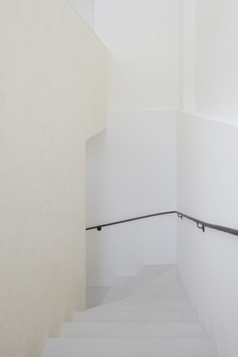 Schodiště a podlahy jsou v chodbách z terazza, v ordinacích z marmolea. Okna do ulice se zvětšily, staly se výlohou. Prostor před domem jsme zbavili plůtku a dostal velkorysé nástupní schody, stal se poloveřejnou součástí ulice.