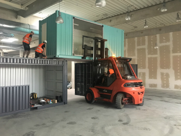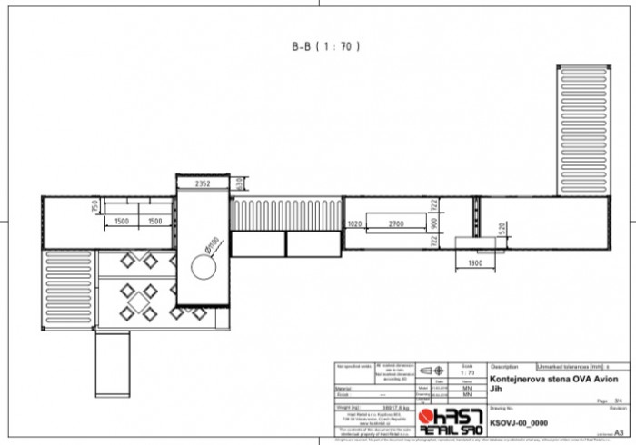 Kontejnerová sestava stěny se skládá z 9ks ISO námořních kontejnerů a díky tomuto projektu jsme našli kontejnerům nový domov a použití. Investoři zohlednili v projektu i ekologickou stránku věci – v jejich zadání byla právě podmínka pro využití použitých námořních kontejnerů.
