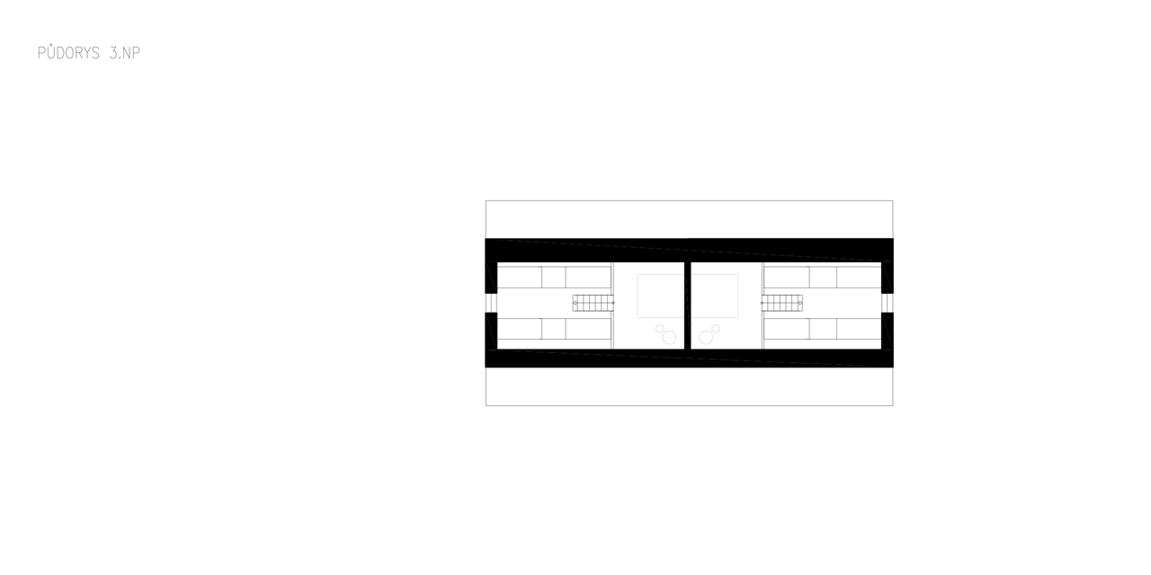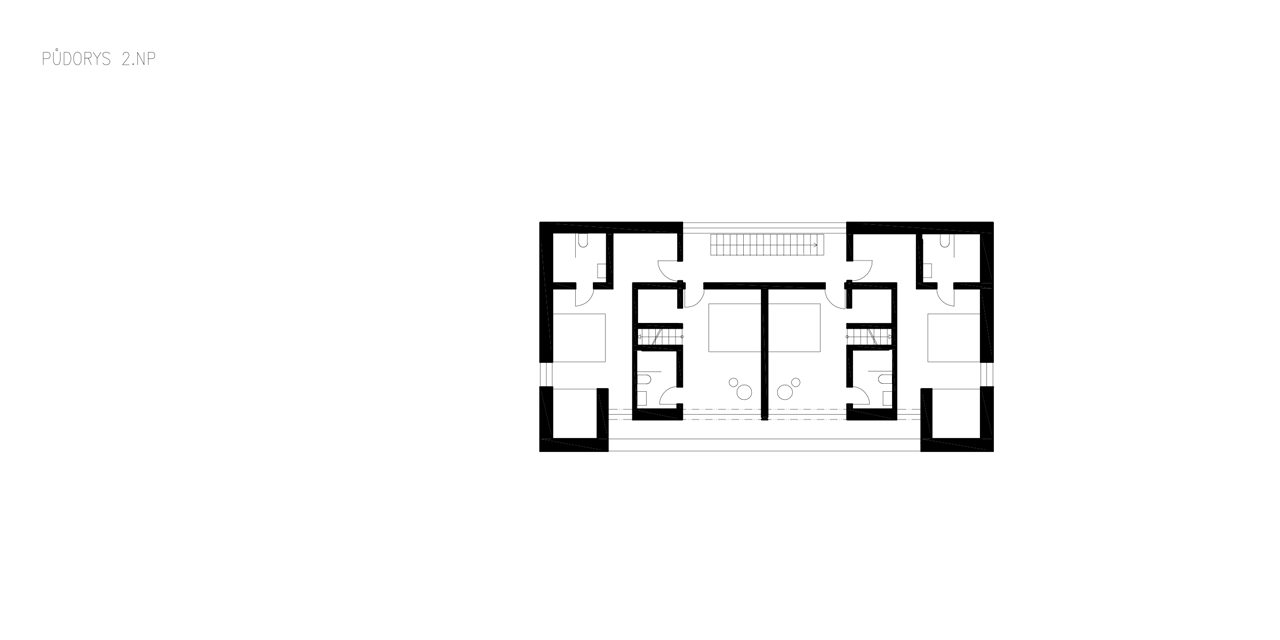 V přízemí objektu v části pod hlavní hmotou je situován obytný prostor s kuchyní a jídelnou a krytou terasou. V patře přístupném po jednoramenném schodišti jsou umístěny 4 ložnice se samostatnými koupelnami. Všechny ložnice mají přístup na společnou lodžii na západní fasádě.