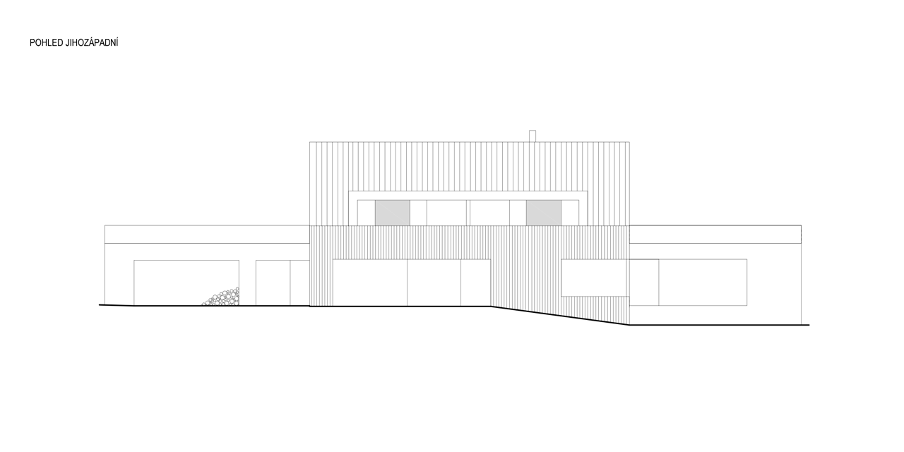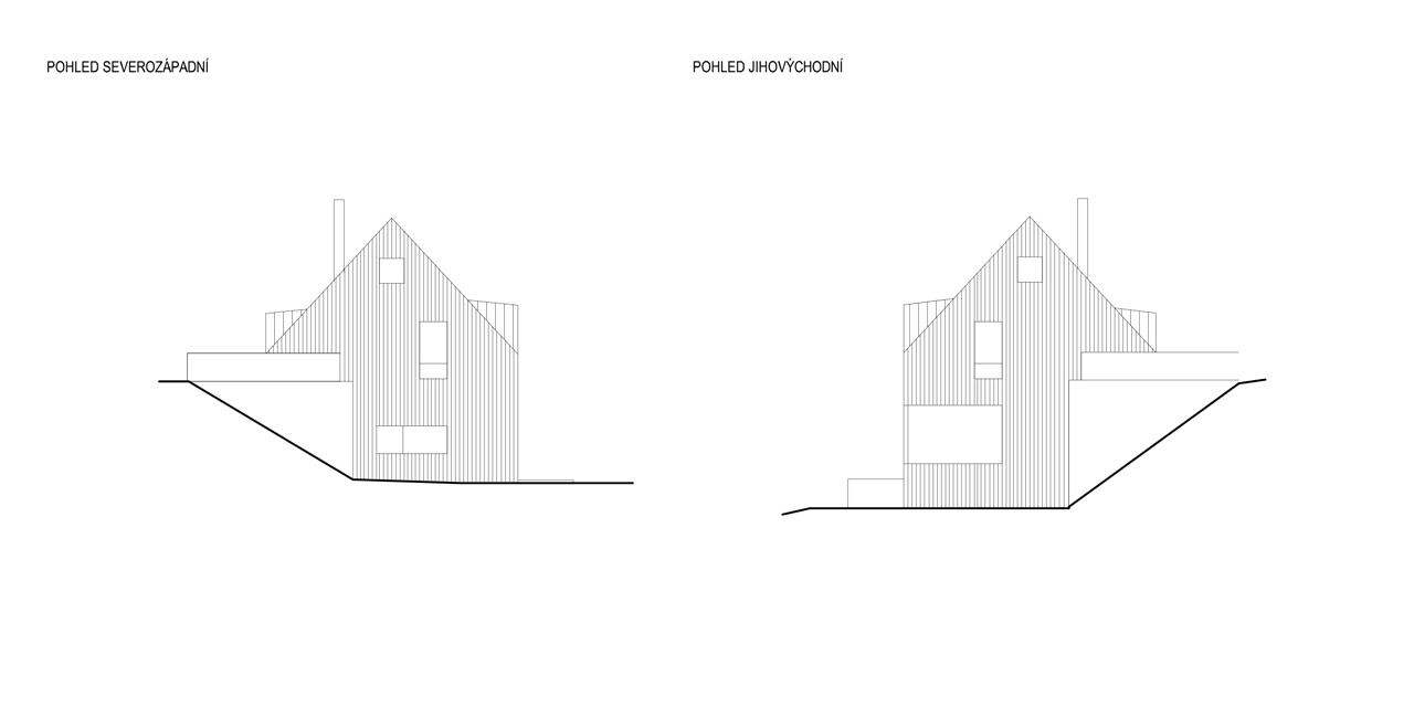 Fasády hlavní hmoty objektu jsou tvořeny modřínovým vertikálním obkladem bez povrchové úpravy. Krytina sedlové střechy je z oxidovaných měděných plechů, které na východní straně přechází do fasády. Část přízemí zapuštěná do terénu se pohledově uplatňuje pouze západní fasádou s kamenným obkladem.