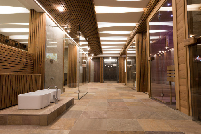 V místě bývalých podzemních garáží vzniklo komorní wellness centrum – plavecký bazén s protiproudem, whirlpool, Kneippovy vaničky, bylinková sauna a finská sauna.
