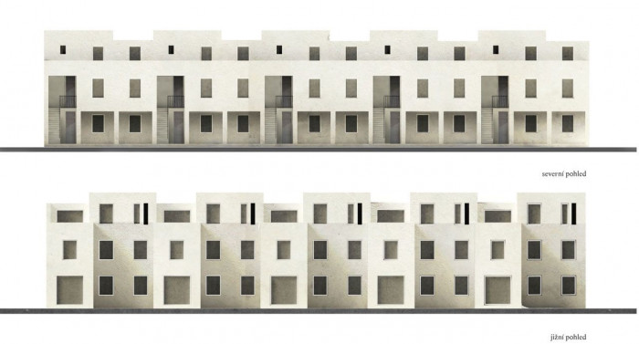 Bývalá továrna cívkárny v Hrádku nad Nisou na svou hlavní budovu let nabalila mnoho různých staveb a přístavků. Jedním z nich je i budova na jižní straně, která je dnes téměř prázdná a z části funguje jako autoopravna. Na jejím místě navrhuji bytový dům. Svou čelní – severní fasádou se pokorně obrací čelem k továrně, respektuje její vertikalitu a zároveň se pevně drží římsy. Před sebou si vytváří předprostor, který charakterem odpovídá vnitrobloku, může sem vstoupit kdokoliv, ale jen místní se zde budou cítit opravdu jako doma. Naopak jižní fasáda se rozbíjí směrem do soukromých zahrad na drobnější hmoty a vytváří tak zákoutí k posezení.