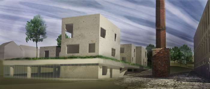 Návrh bytového domu s knihovnou, archivem, kavárnou a komunitními prostory je v poslední pozůstalé stavbě bývalé nítárny.