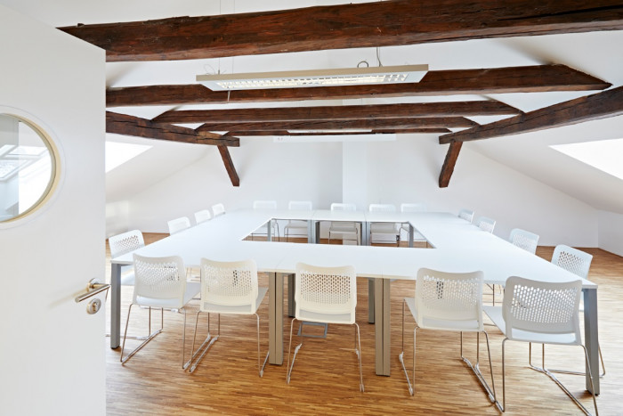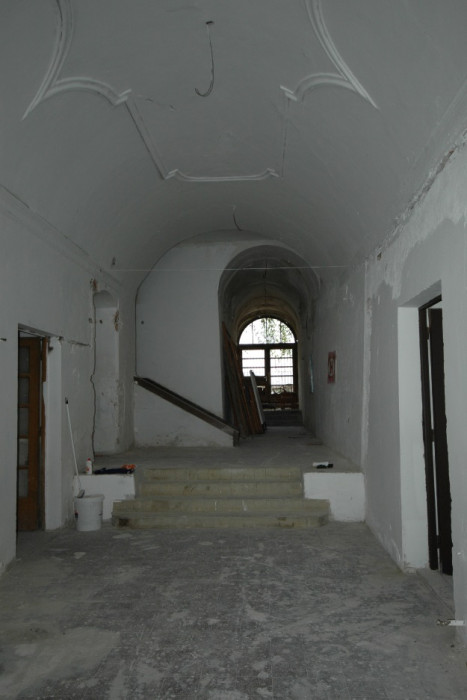 V prostoru podkroví byla odstraněna mohutná zděná vestavba přetěžující stropní konstrukce 3. nadzemního podlaží a nahrazena lehkou vestavbou na dvou podlažích, propojenou skleněným schodištěm.