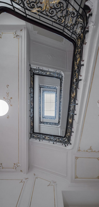 Důraz byl kladen na úzkou spolupráci s restaurátorem i zástupci památkové péče. Bohatá štuková výzdoba stěn a stropů byla pečlivě zrestaurována, stejně jako kované zábradlí hlavního schodiště a vstupní mříž. Bohužel již vyžilá dřevěná kastlová okna byla vyměněna za repliky, vnitřní dveře z 90. let byly nahrazeny novými dřevěnými s obložkovými zárubněmi. Lze říci, že všechny nové vstupy spíše podporují charakter domu – na několika místech byla obnovena původní velkorysá dispozice, nově byly provedeny všechny povrchy podlah a stěn, přičemž byl kladen důraz na jejich kvalitu a nadčasovost.