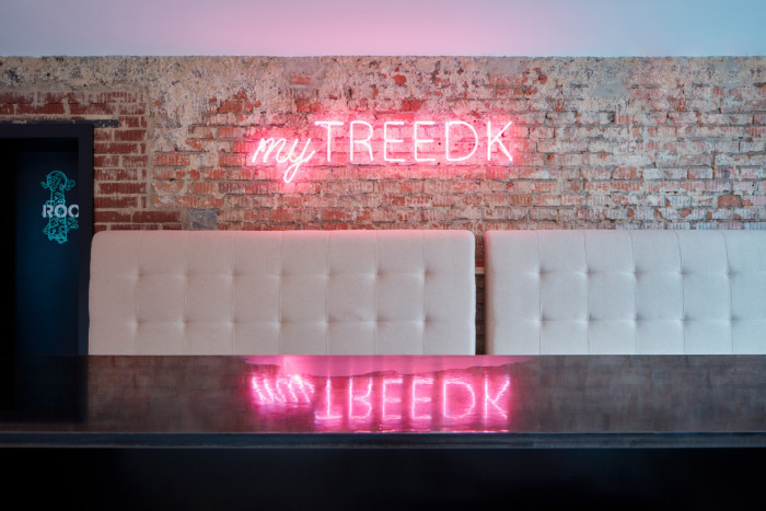Celý směr se začal formovat během realizace řešení pro původní kliniku TREEDK v objektu ze 30. let, kterou měl na starost David Wittassek. Nevšední ordinace myTREEDK na její koncept svým volným neotřelým pojetím navazuje. V novém pronajatém místě se však nabízelo být odvážnější, více avantgardní.„Když jsem přišel do vybouraného prostoru, líbilo se mi to. Byl to klíčový moment. Říkal jsem si, nechme to tak. Udělejme z toho přednost. Hlavní bylo zachovat atmosféru. Aby to fungovalo akusticky, připevnili jsme na strop dřevěný rošt s akusticky pohltivým materiálem – on se i pacient na zubařském křesle cítí daleko lépe, když kouká na přírodní materiál a ne do bílého stropu,“ říká autor návrhu.