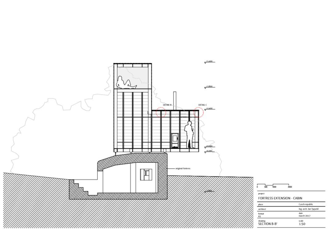 Nový objem na řopík pouze lehce "sedá" a po konci životnosti ho lze kompletně odstranit. Nástavba je svým způsobem pravým opakem bunkru - vzdušná lehká stavba viditelná již z dálky.