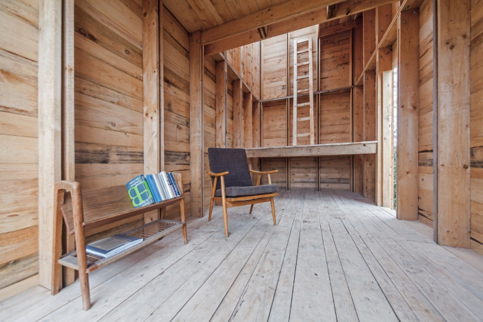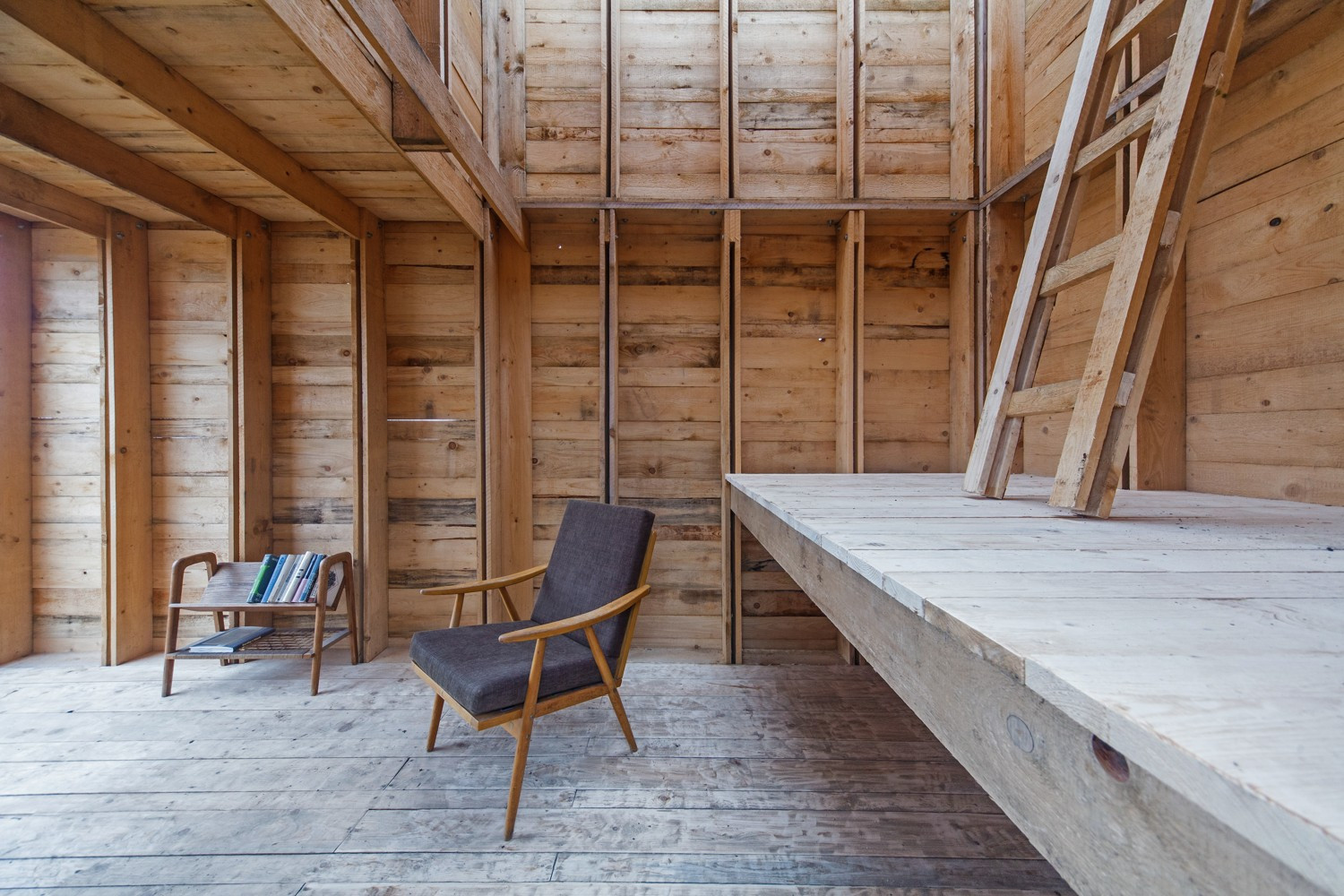 Je to netypická dřevěná konstrukce kompletně zhotovená pouze z jednoho profilu prken, kde je fasáda nedílnou součástí nosné konstrukce. Stavba není zateplena, což bylo vnímáno některými kolegy jako nedostatek, na druhé straně lidstvo žilo drtivou dobu své existence v obdobných podmínkách a není špatné si to občas připomenout.