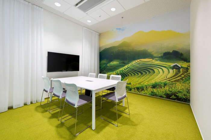 Témata pro jednotlivé jednací místnosti volili zaměstnanci sami a jejich design je tomu přizpůsoben. Vznikly prostory francouzské kavárny, cherry room, chillout atd. Návštěvníky ve vstupním prostoru vítají vlaštovky, které letí nad recepcí inspirované křídlem letadla.