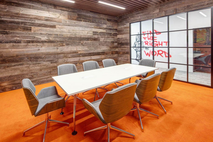 Kombinací originálních kusů industriálního retro nábytku a soudobých designových prvků vnášíme do interiéru záměrně mírně provokativní atmosféru s cílem narušit obvyklou strnulost korporátních kanceláří.