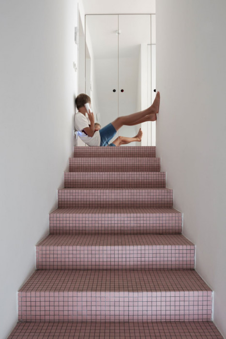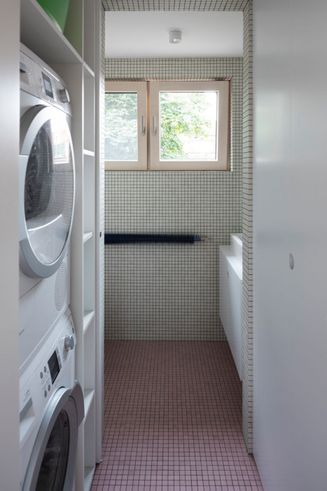 Nosným dispozičným prvkom je nové usporiadanie kuchyne, ktoré je aktívne prepojené s obývačkou prostredníctvom obojsmerne riešenej modulárnej sofy. Keďže v päťčlennej rodine sa pomerne dosť varí, je to naozaj ústredný komunikačný priestor pre všetkých členov.