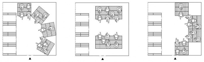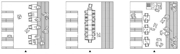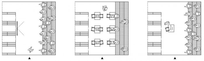 Novým důležitým prvkem celého prostoru knihovny se stává mobilní pobytové schodiště, které má ve svých stupních zabudovaný skrytý úložný prostor pro nábytek – stoly a židle. Pobytové schodiště je konstrukčně rozděleno na 4 pohyblivé segmenty. Spolu s pracovními stoly vytváří místo pro pobývání studentů, kteří si mohou vybrat, jaký způsob sezení jim právě přijde nejlepší. Schody se stávají neformální čítárnou, umožňují velkou variabilitu dějů.