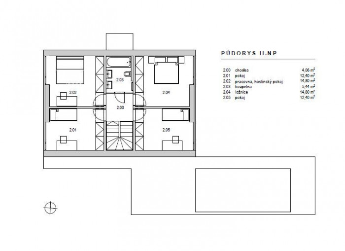 Dialog dřeva a monochromatických ploch v interiéru. Společenská část v I.NP je orientovaná na jižní stranu do zahrady. Ložnicová část ve II.NP, dělitelná na 2 až 4 prostory, je orientovaná na výhledy východním a západním směrem. Dům je vyzděný z cihelných bloků, stropy jsou panelové. Dům je vytápěn podlahovým topením s tepelným čerpadlem země voda.